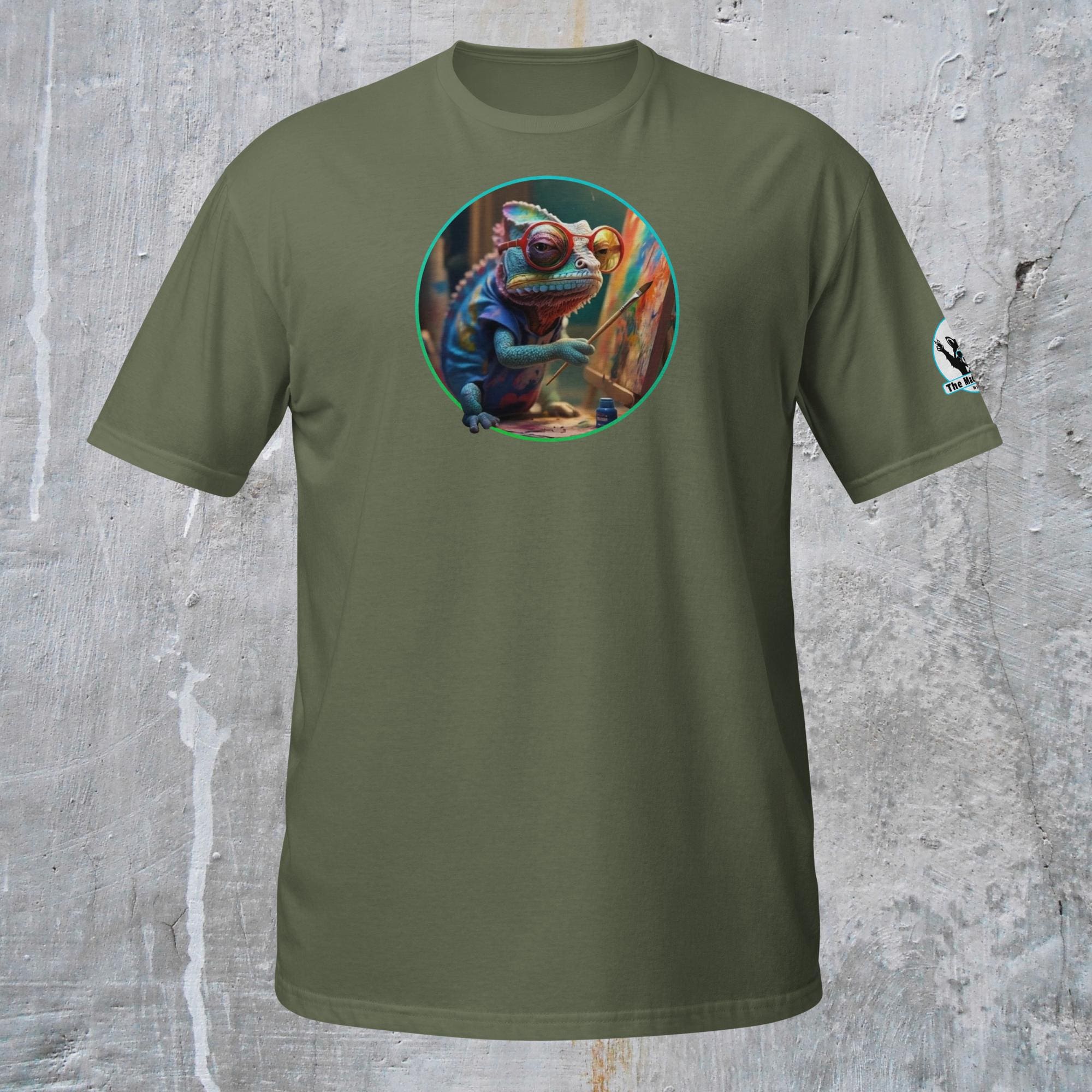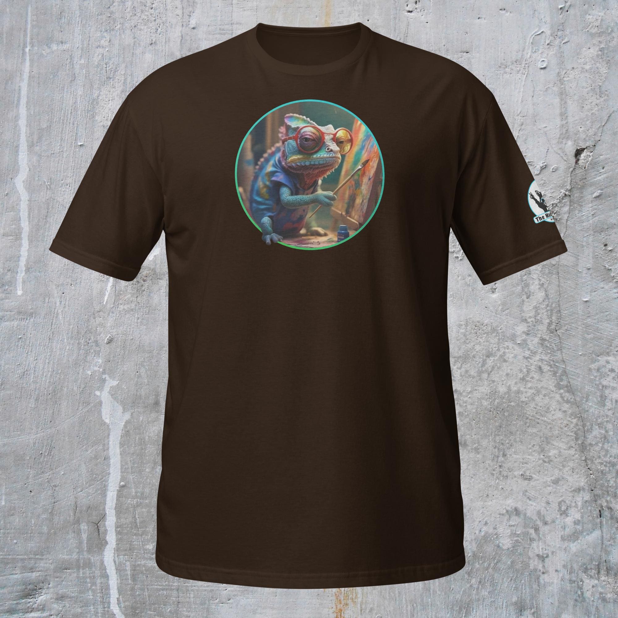 The design is built around the definitive power-statement: “I don’t change my colors. I change the colors around me.” It reframes the chameleon as an active agent of change, using its artistic output to bend the environment to its own vibrant will.