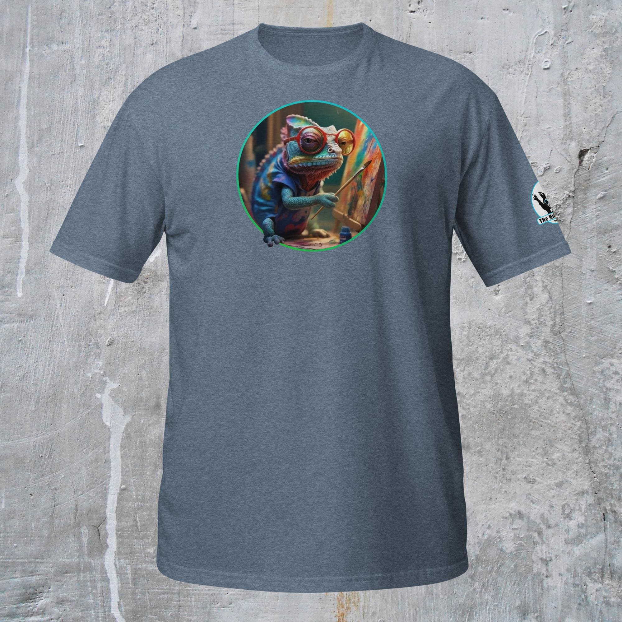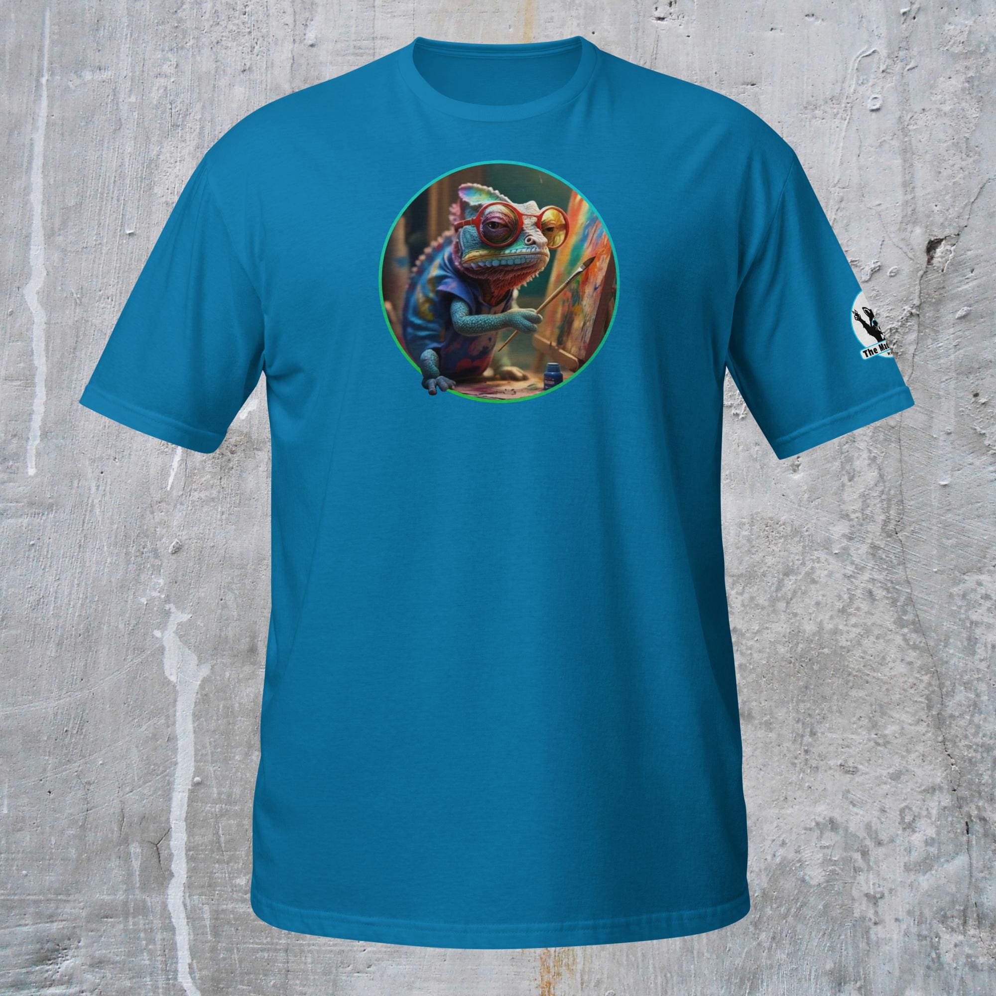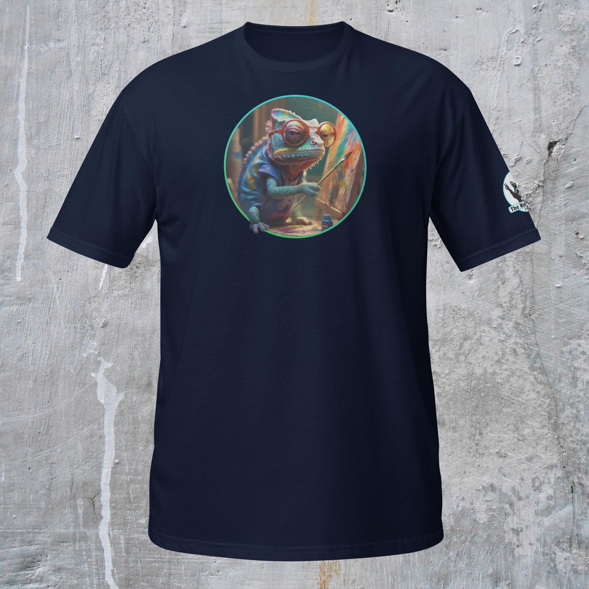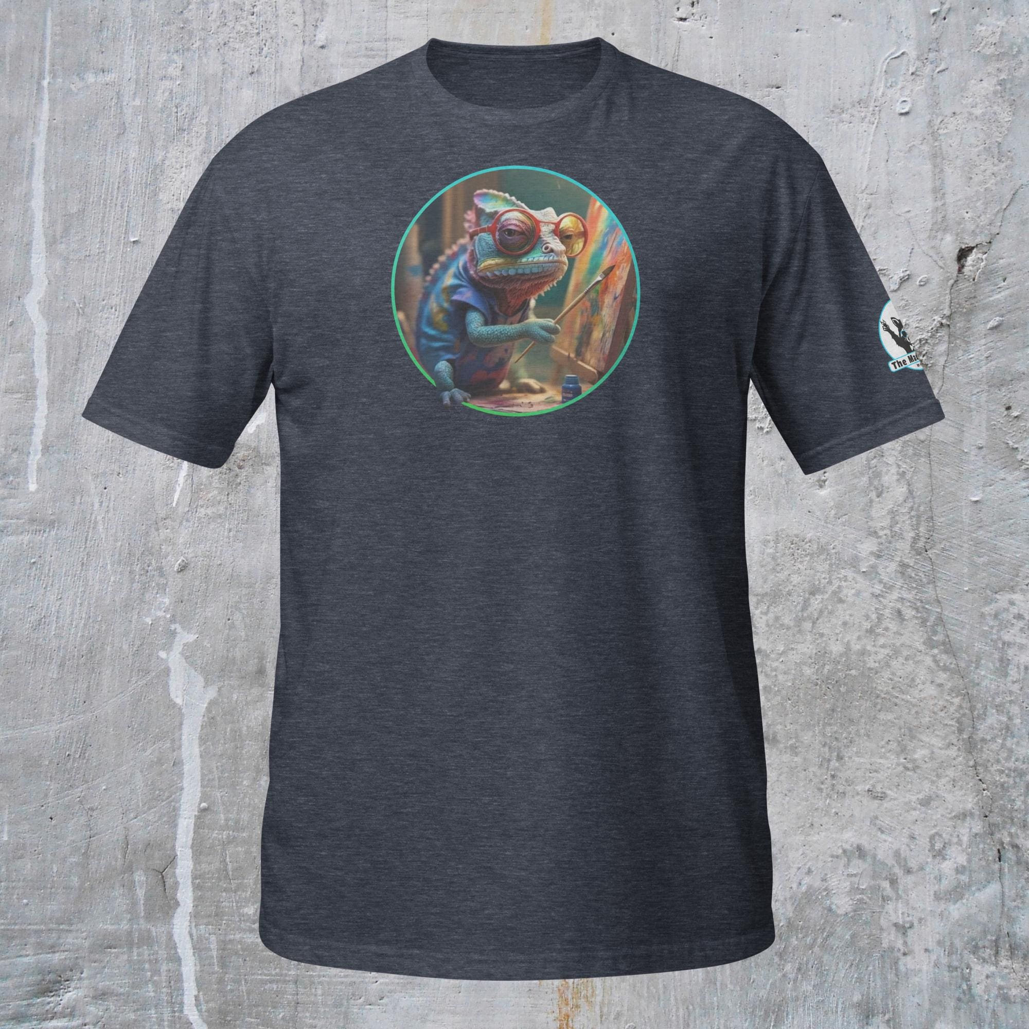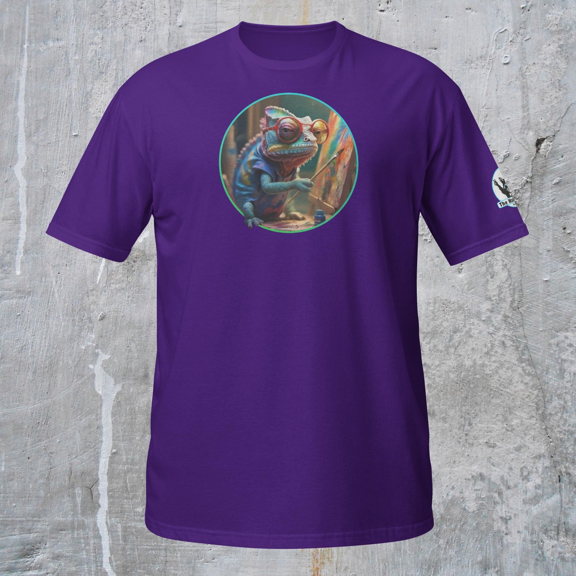 This is the ultimate rejection of the “blend in” mentality. For too long, the chameleon has been the poster child for passive adaptation—but no longer. This design features an elite chameleon in high-saturation sunglasses, commanding a canvas with absolute confidence. It is a visual declaration of a new reality: one where you don’t adjust your frequency to match the room; you recalibrate the room to match your frequency.