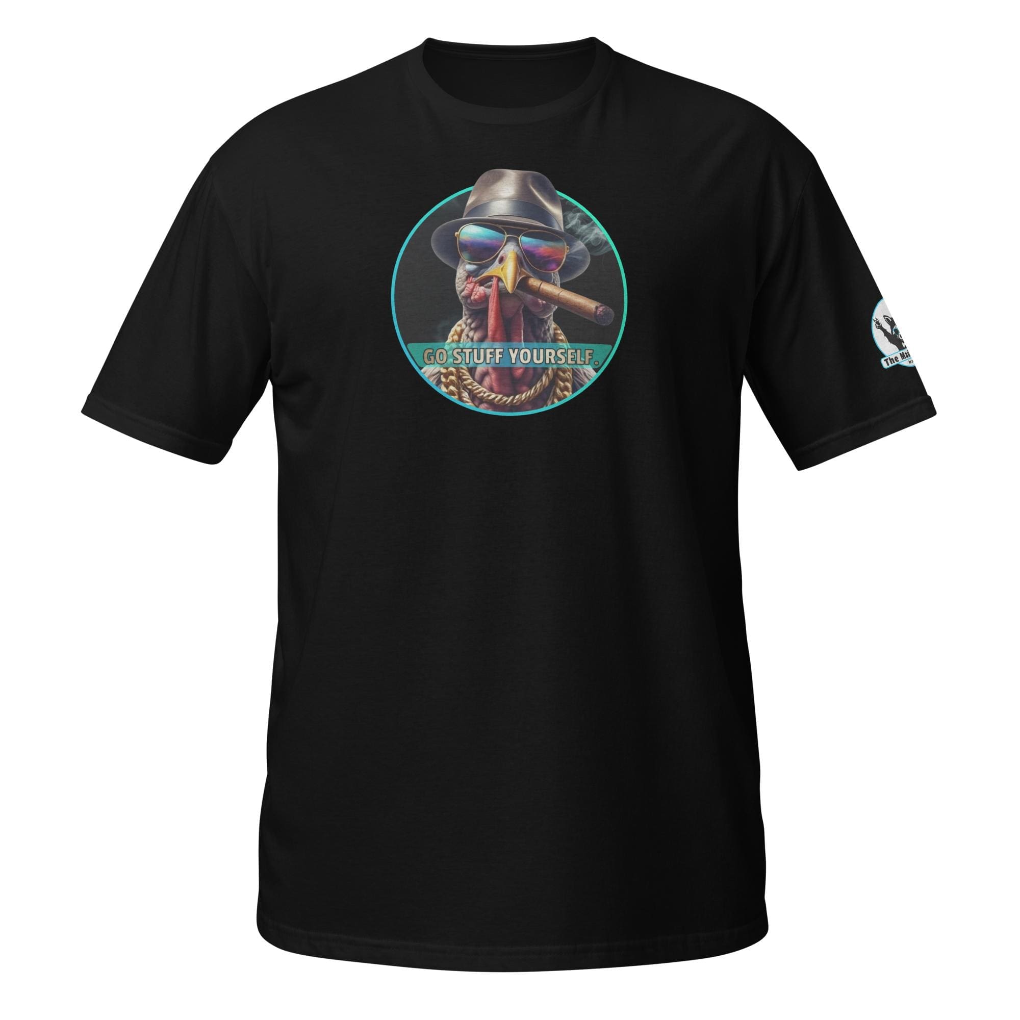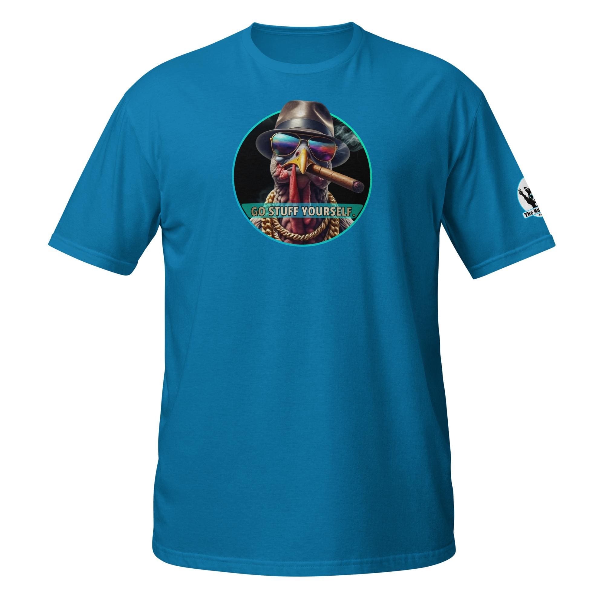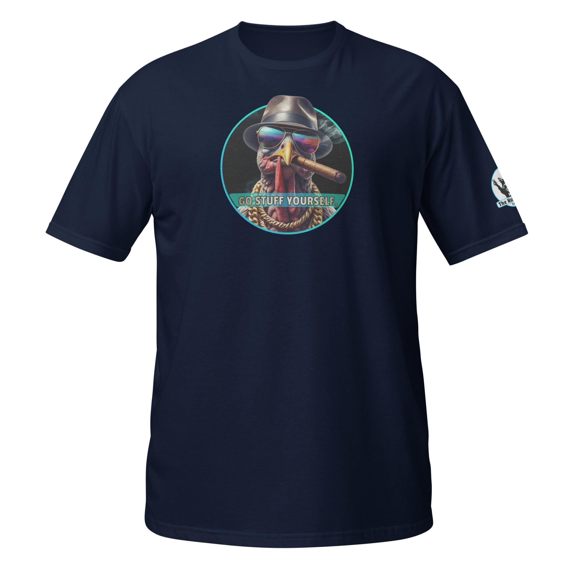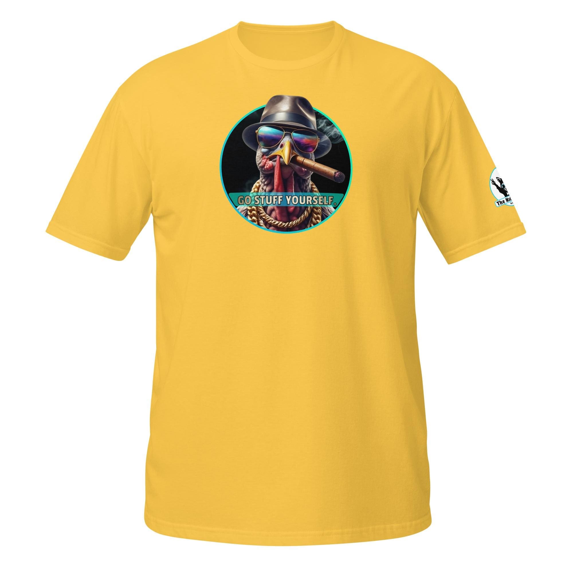This bird isn’t on the menu, he is the menu—of defiance! Our “Go Stuff Yourself!” design features the coolest, toughest turkey you’ll ever meet. This