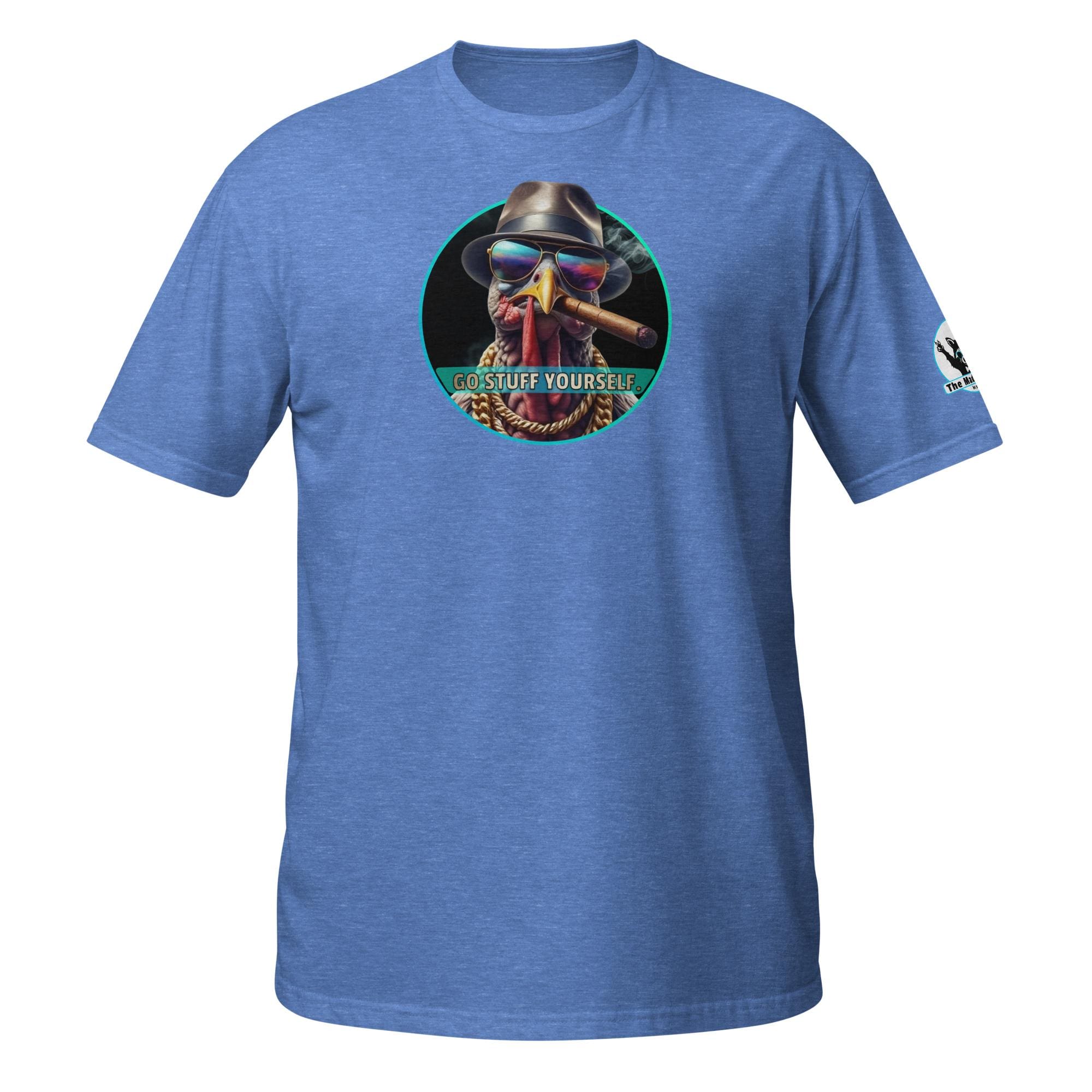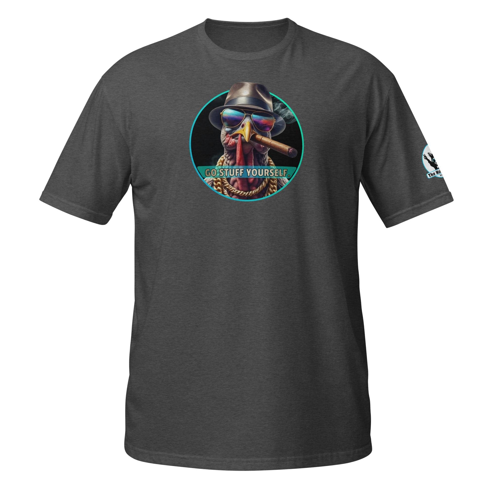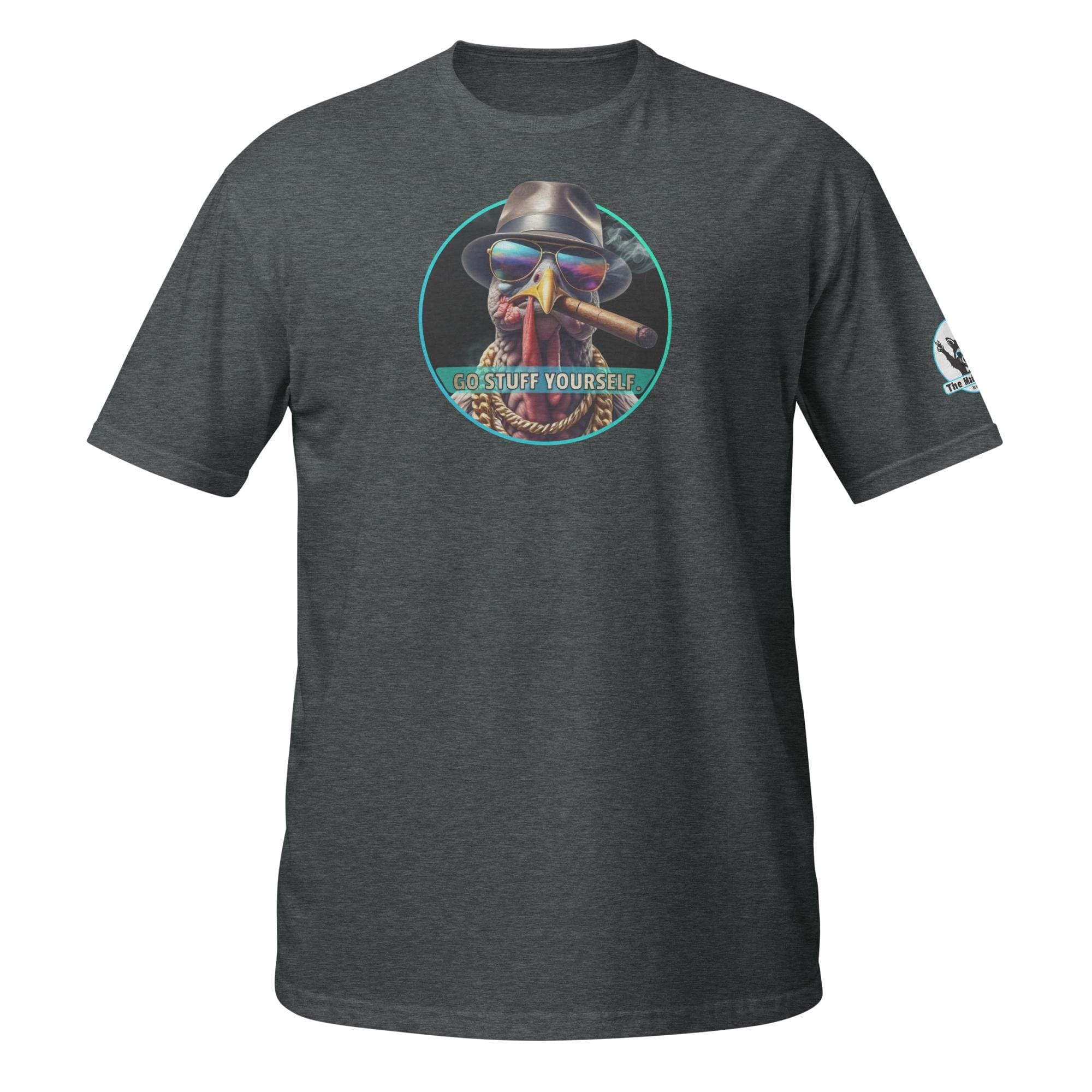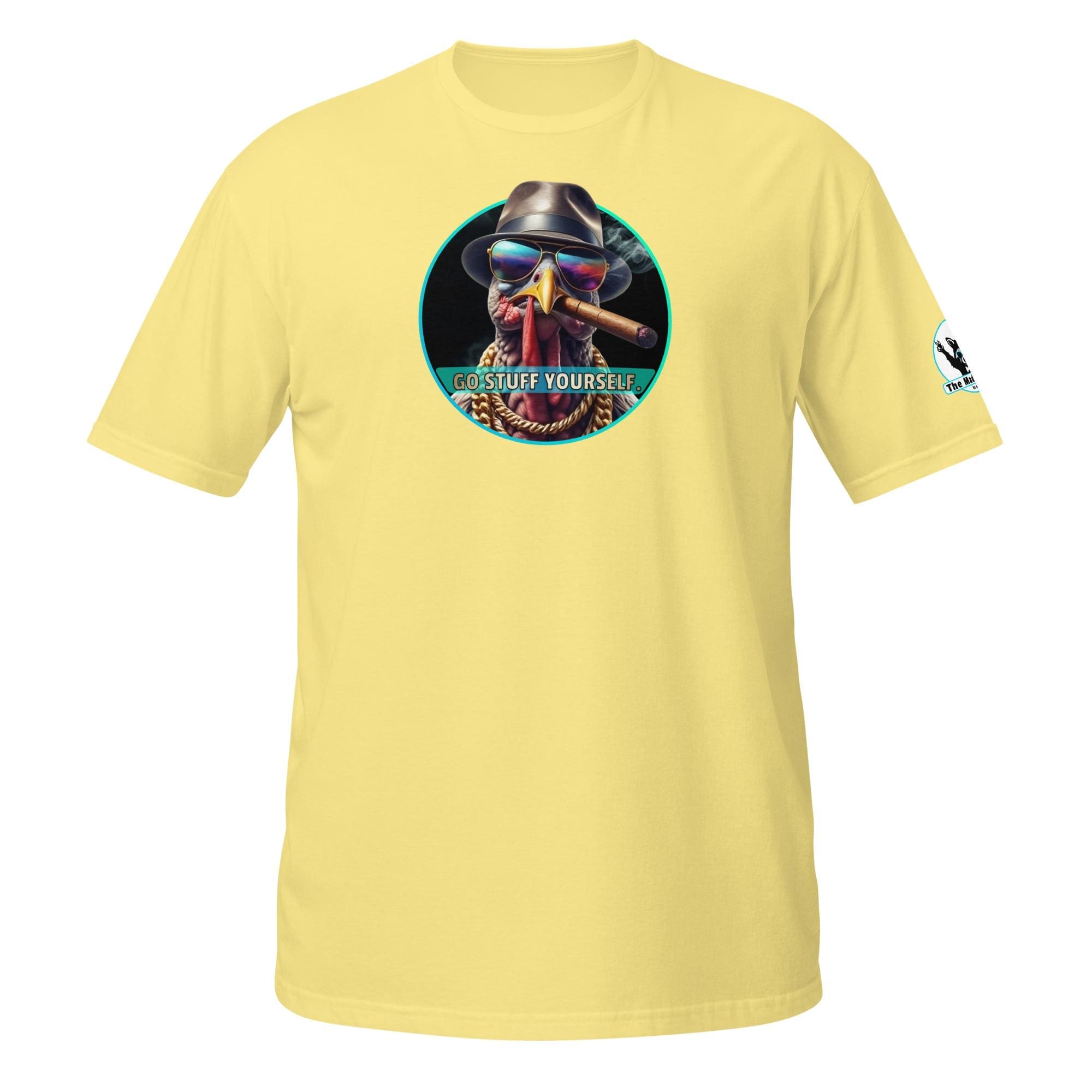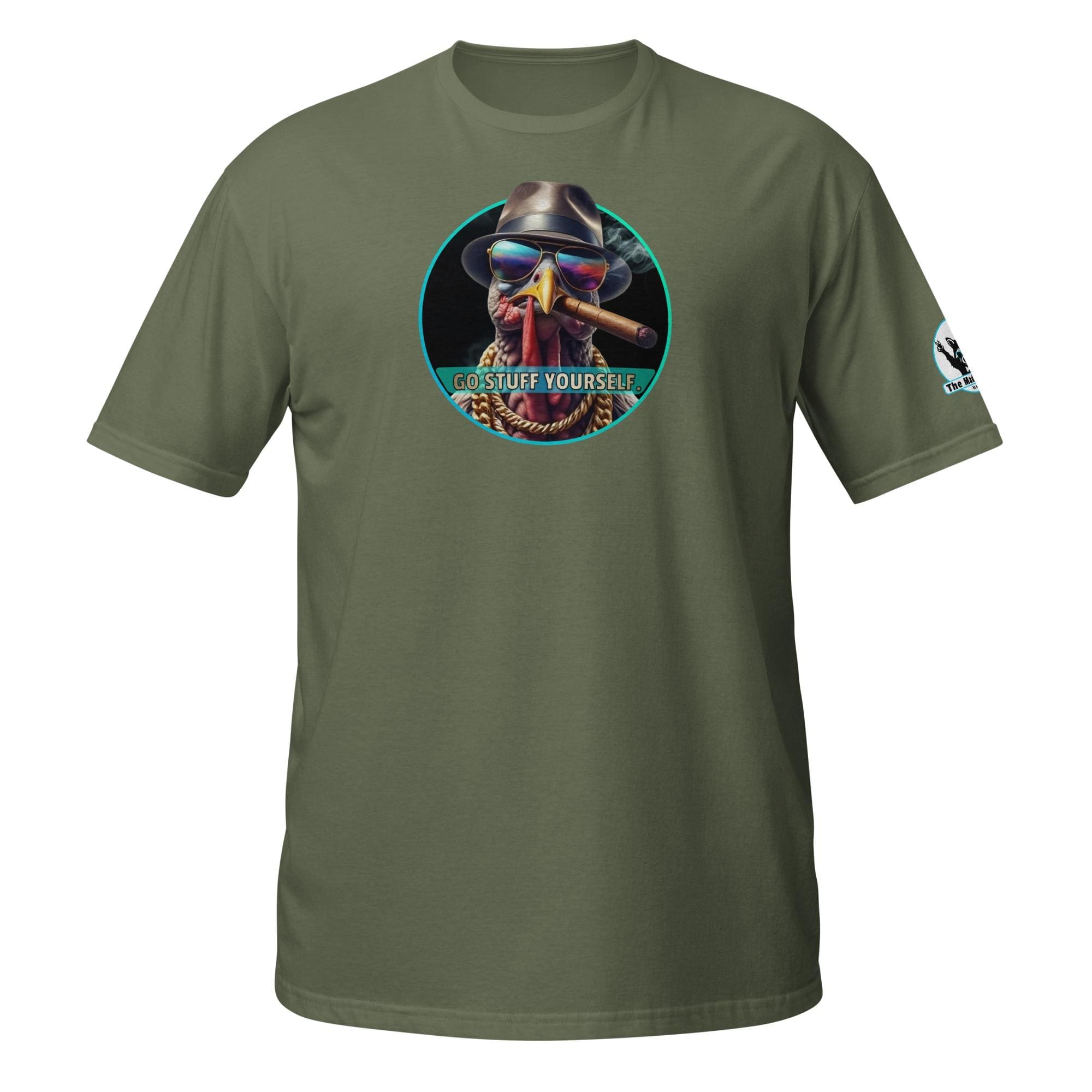 This bird isn’t on the menu, he is the menu—of defiance! Our “Go Stuff Yourself!” design features the coolest, toughest turkey you’ll ever meet. This