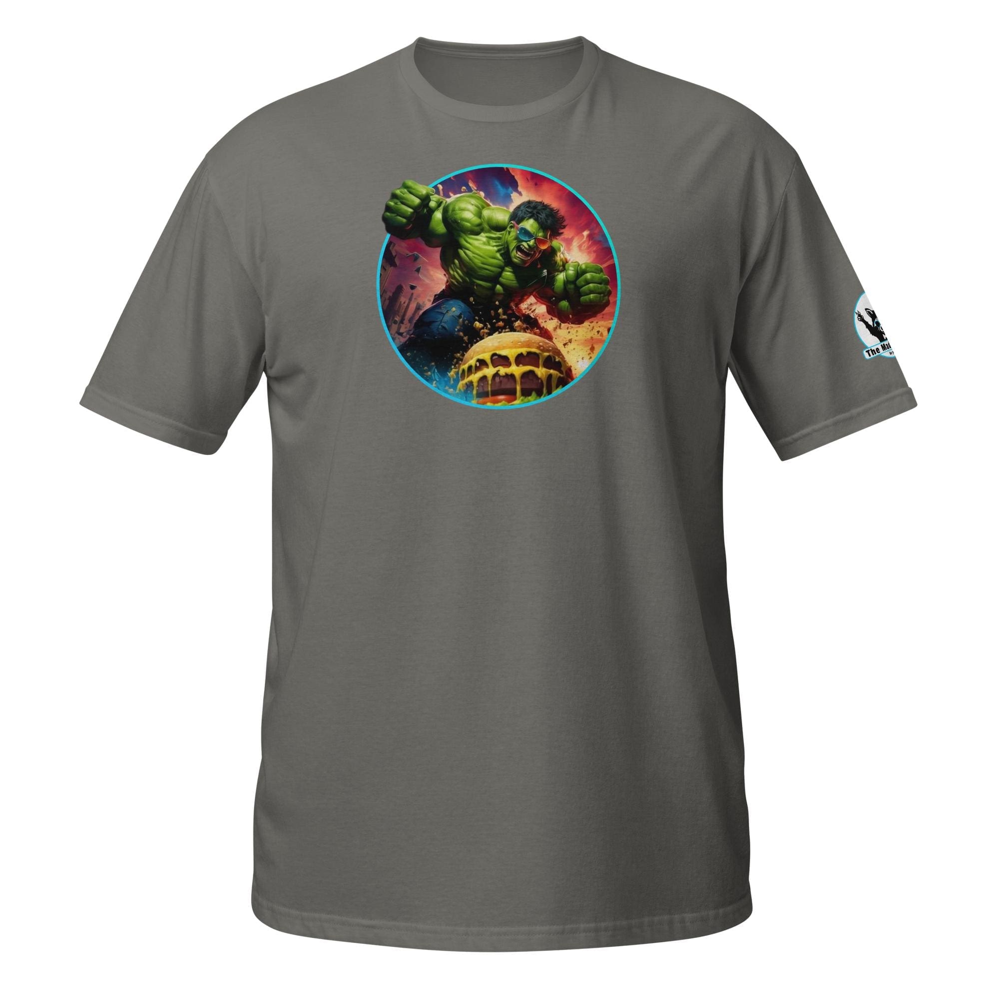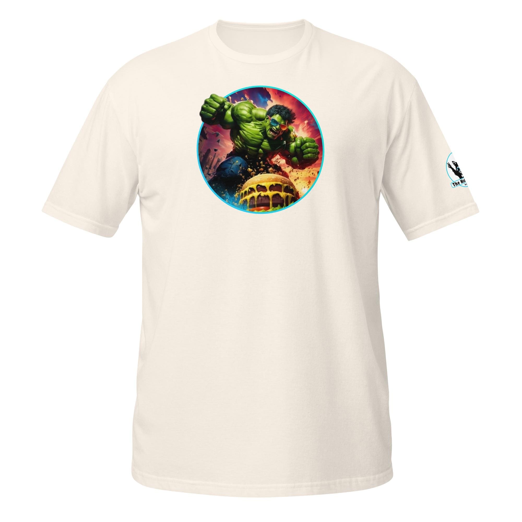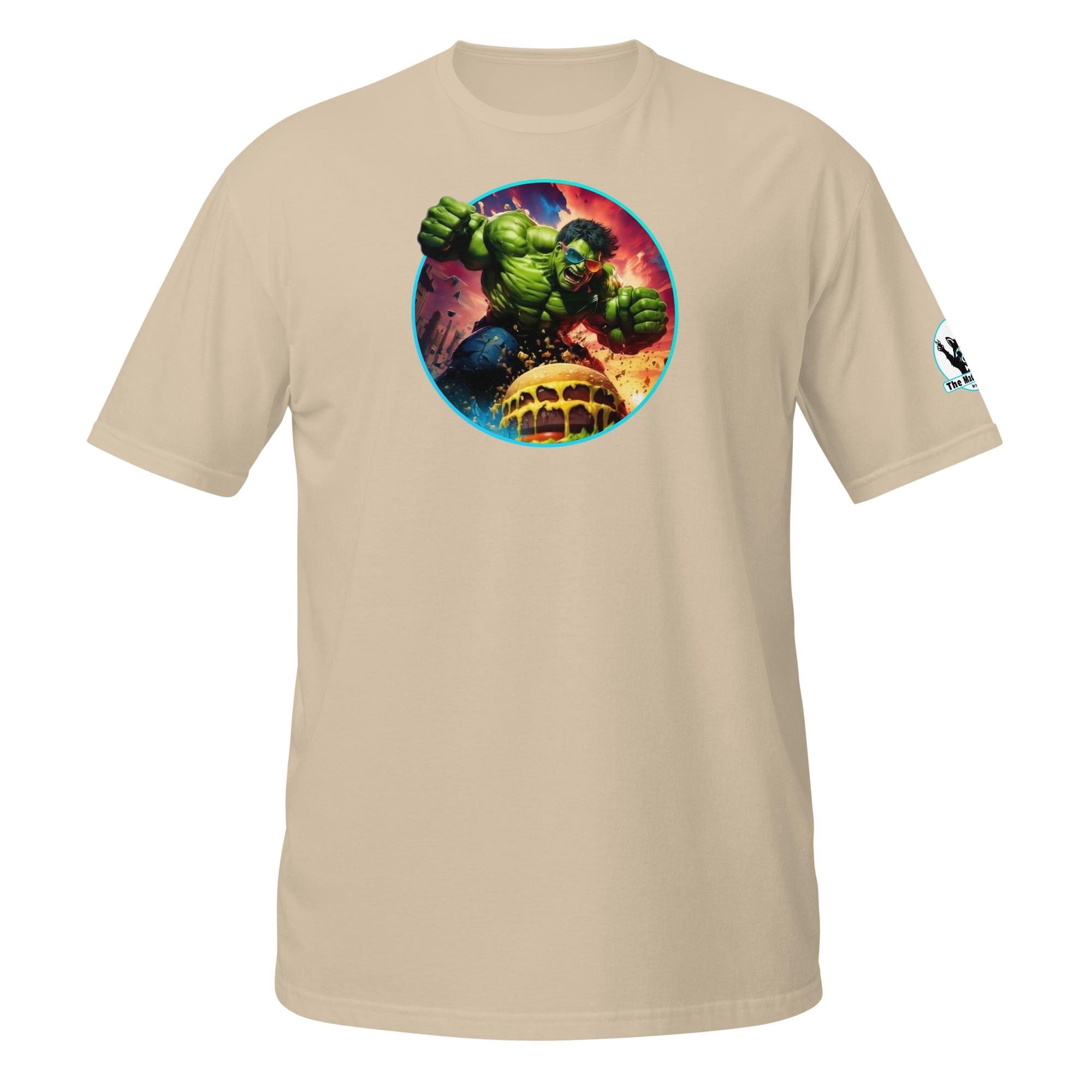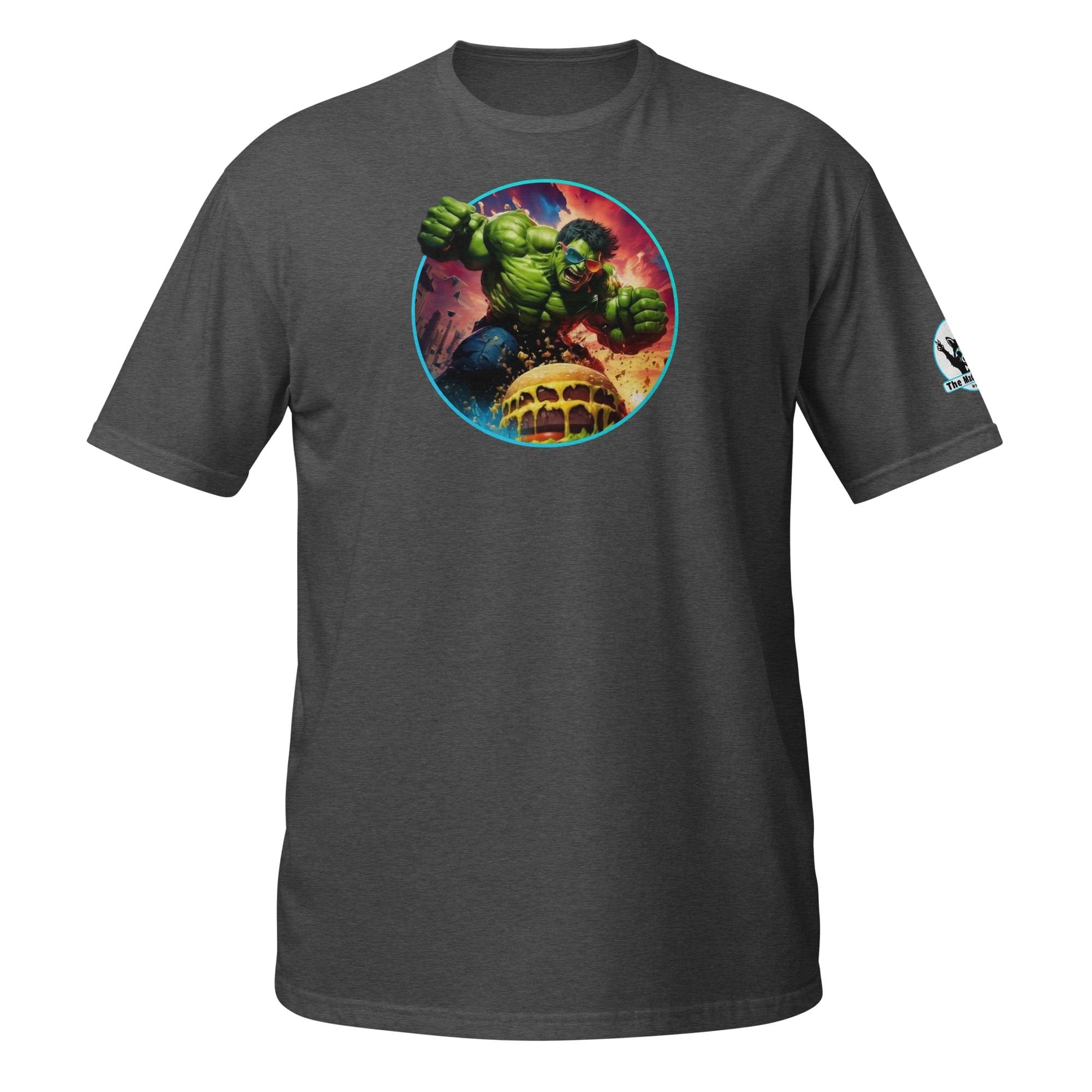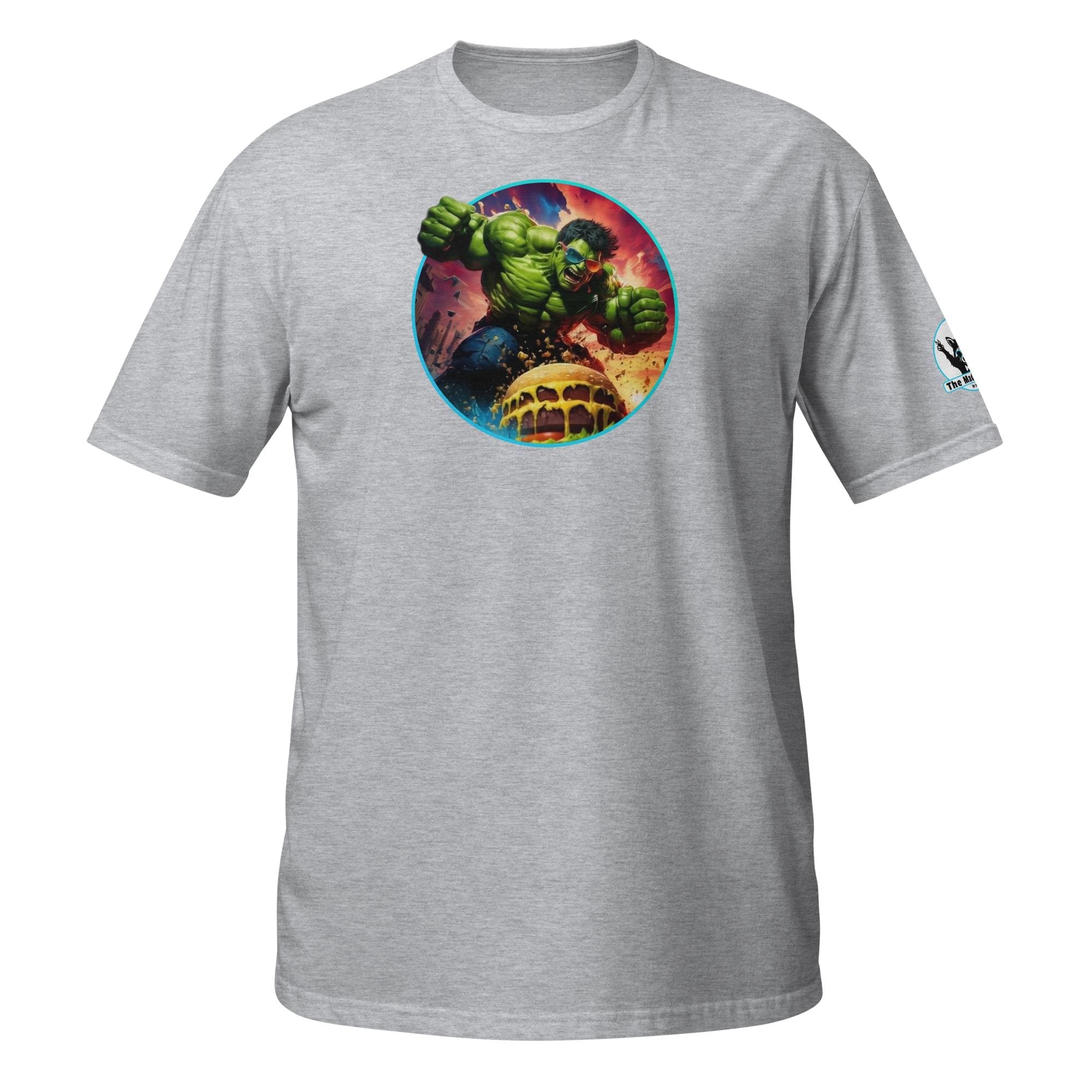 Forget the gentle spatula—real flavor is forged with pure, unadulterated power! Our “Hulk Smash Burger: Gamma-Charged Grub” design captures the most epic culinary