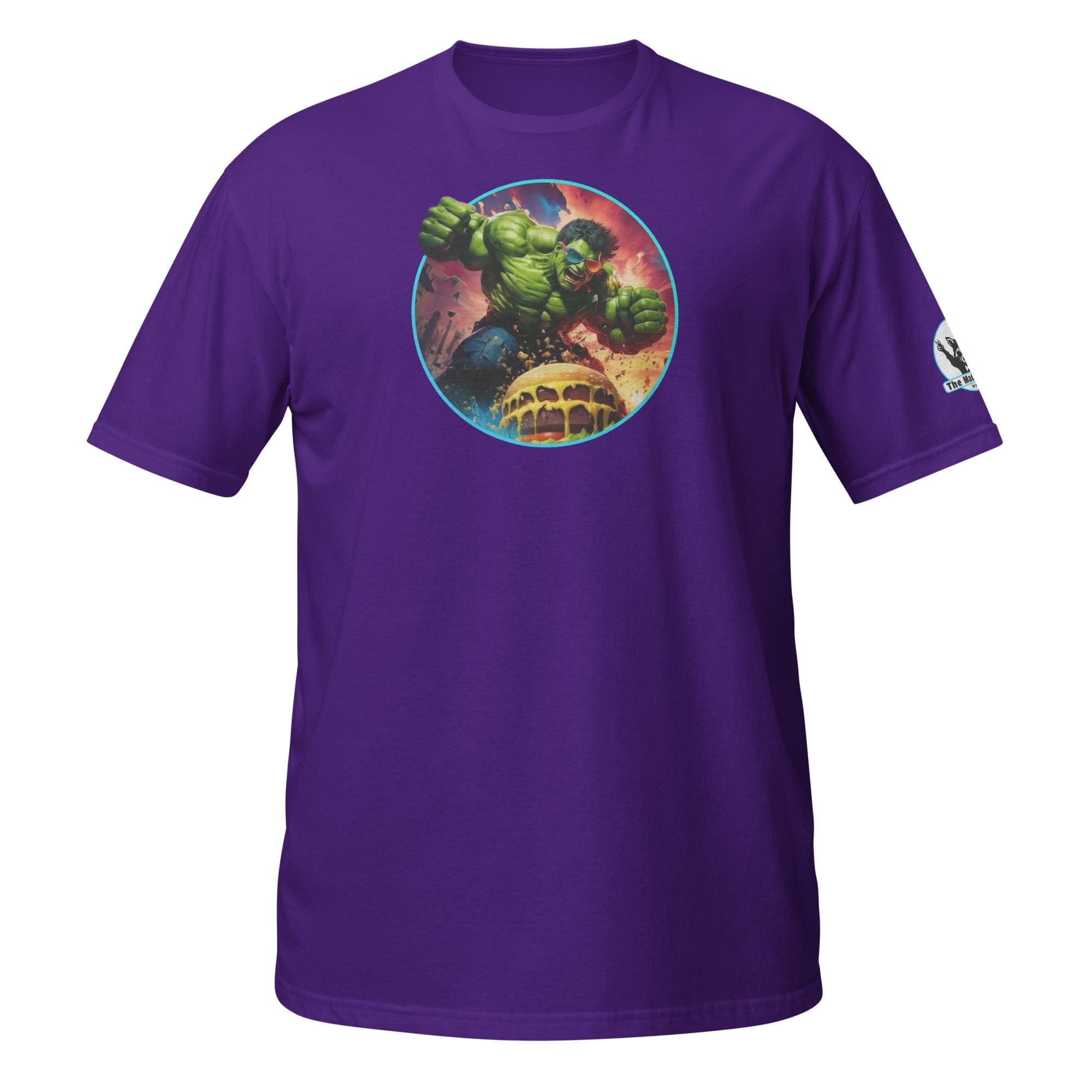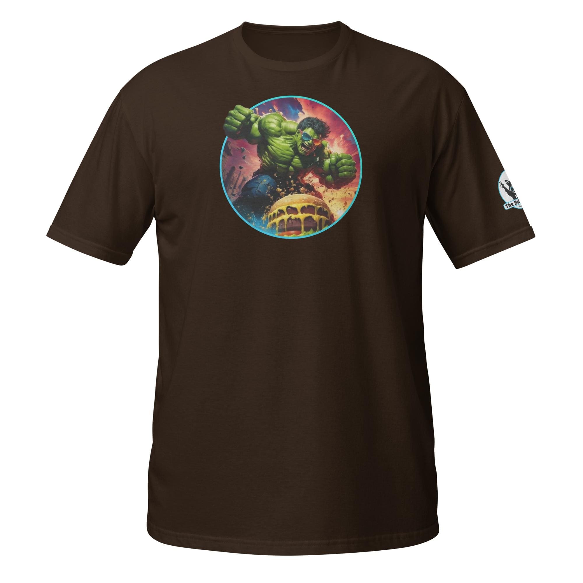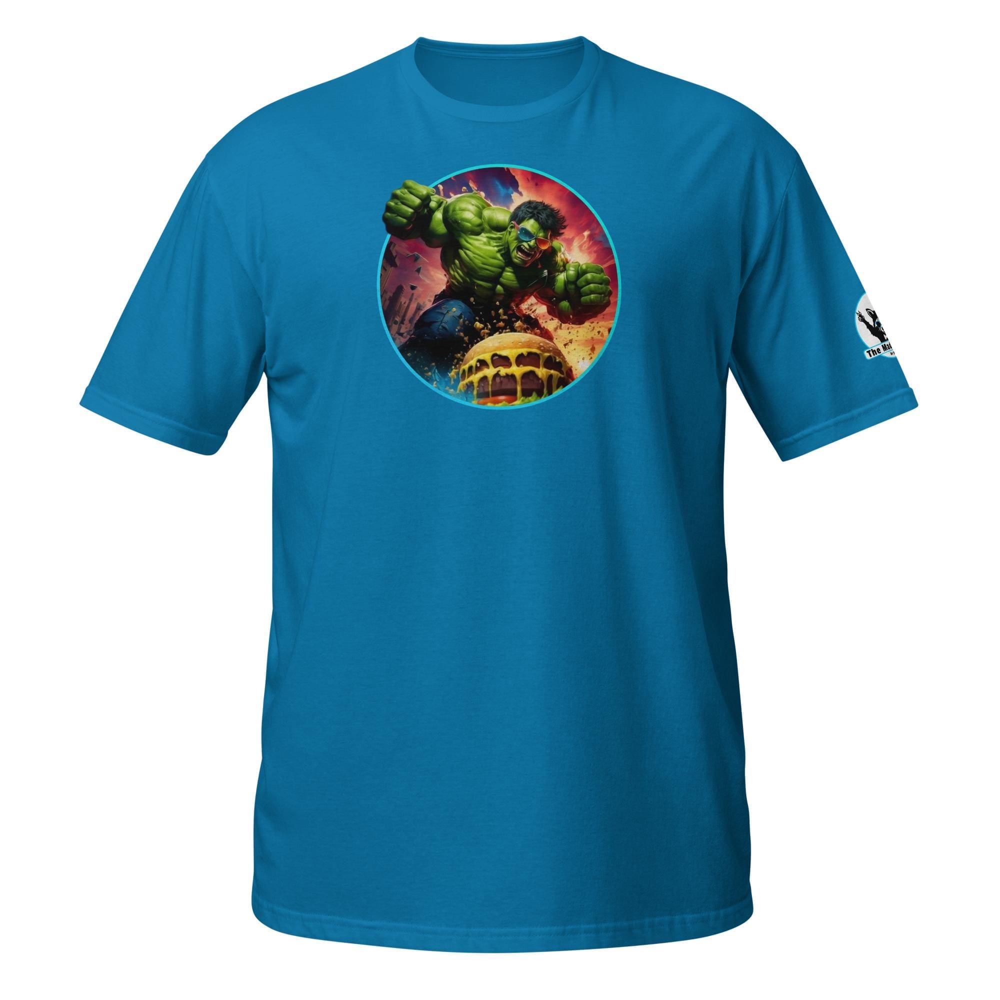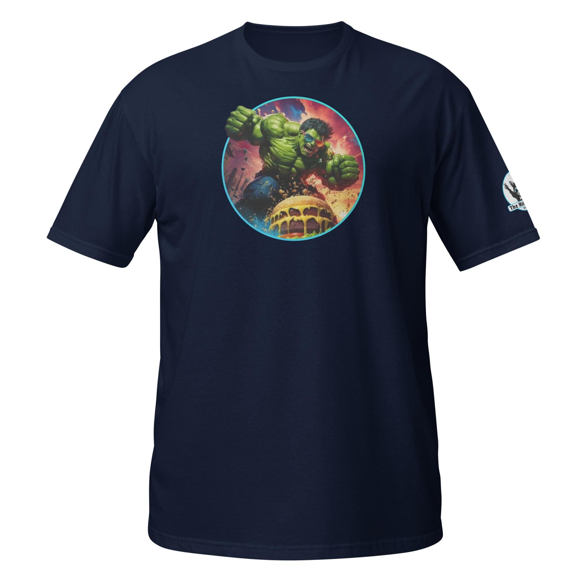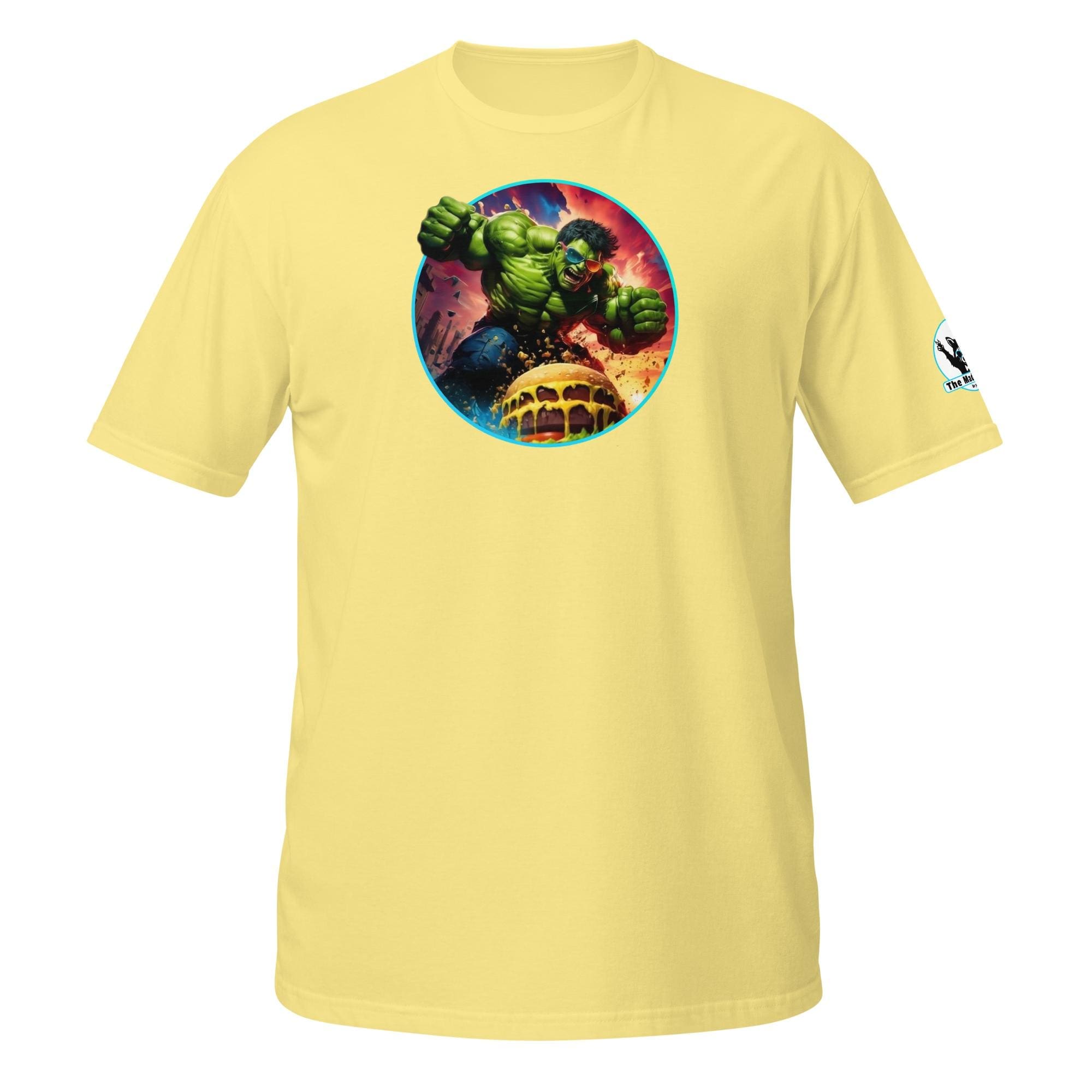 Forget the gentle spatula—real flavor is forged with pure, unadulterated power! Our “Hulk Smash Burger: Gamma-Charged Grub” design captures the most epic culinary