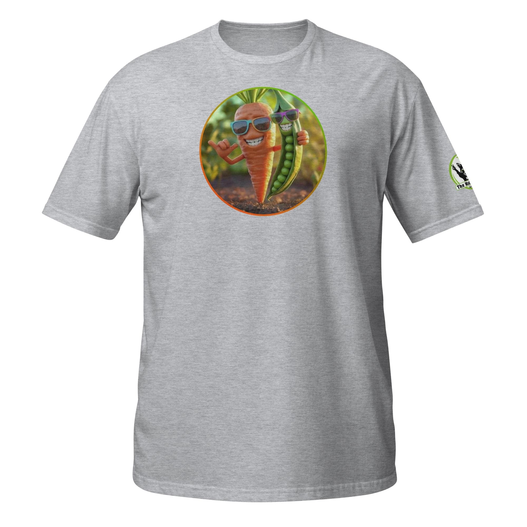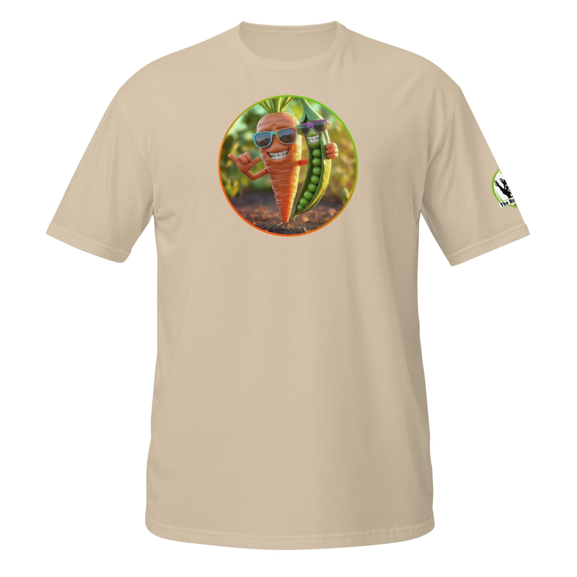 Some things just go together, perfectly! Our “Peas & Carrots: The Perfect Pair!” design celebrates those inseparable bonds and classic combinations with heartwarming charm. This incredibly adorable graphic features a tall, cheerful carrot, radiating pure joy and coolness behind its vibrant, colorful sunglasses. With a big, friendly smile, the carrot has its “arm” affectionately around a happy, equally cool pea, who is also sporting shades and a big grin! It’s the ultimate visual representation of harmony, friendship, and that universally understood phrase: “They go together like peas and carrots.”