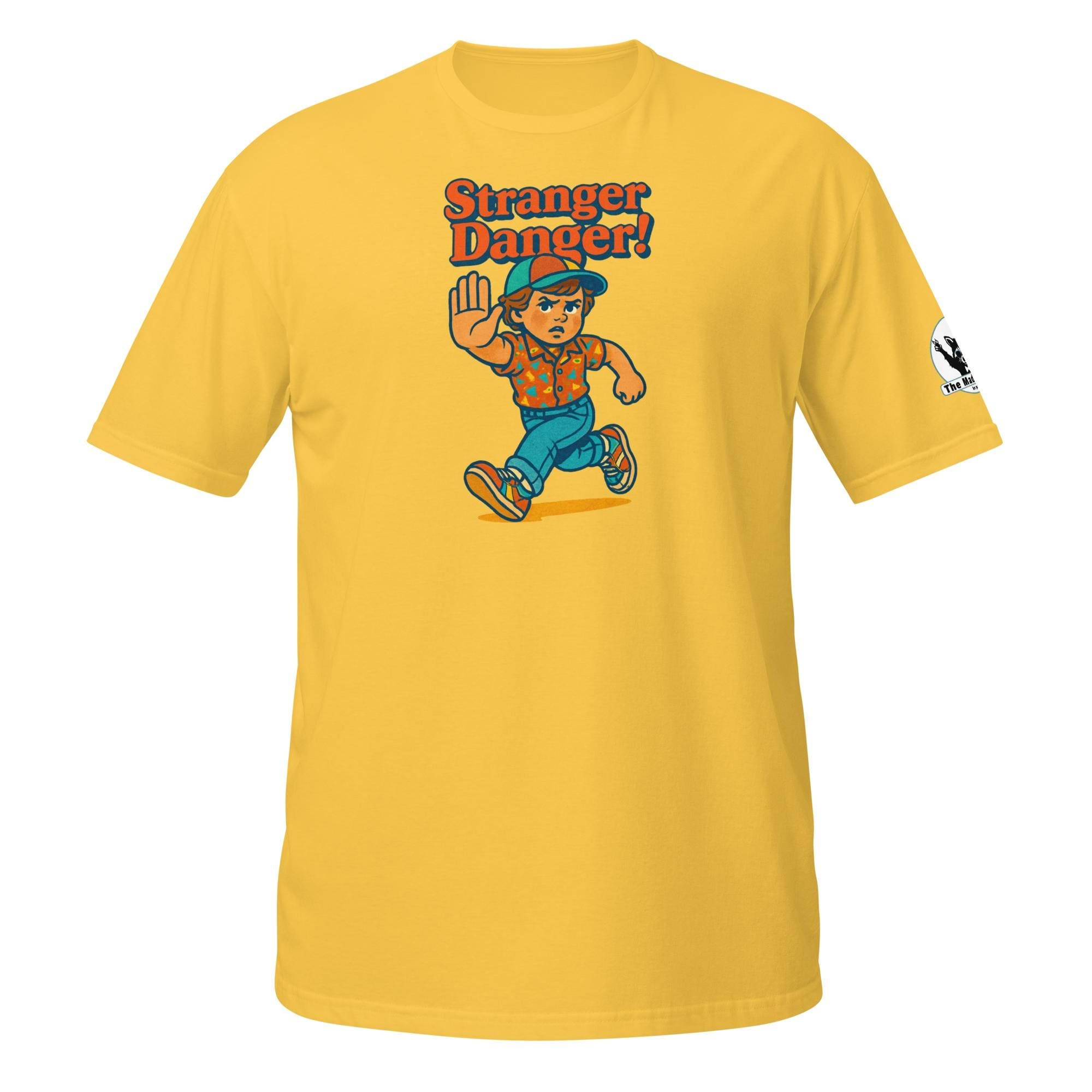 This design is a nostalgic tribute to that timeless rule. Featuring a heroic, little figure in a full-blown sprint, it’s a funny, universal symbol of a lesson that’s as relevant today as it was in the ’80s and ’90s. This isn’t just a shirt; it’s a badge of honor for anyone who mastered the art of “no thanks” and a fast getaway.