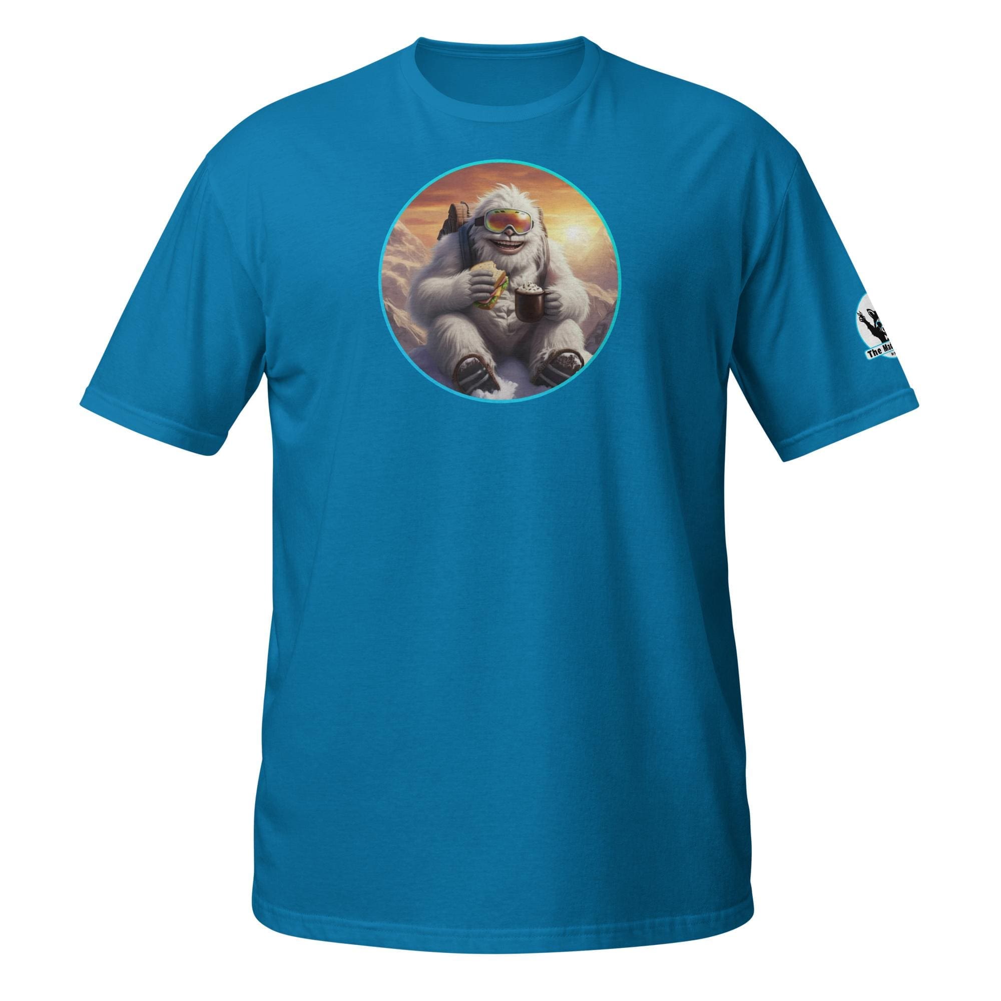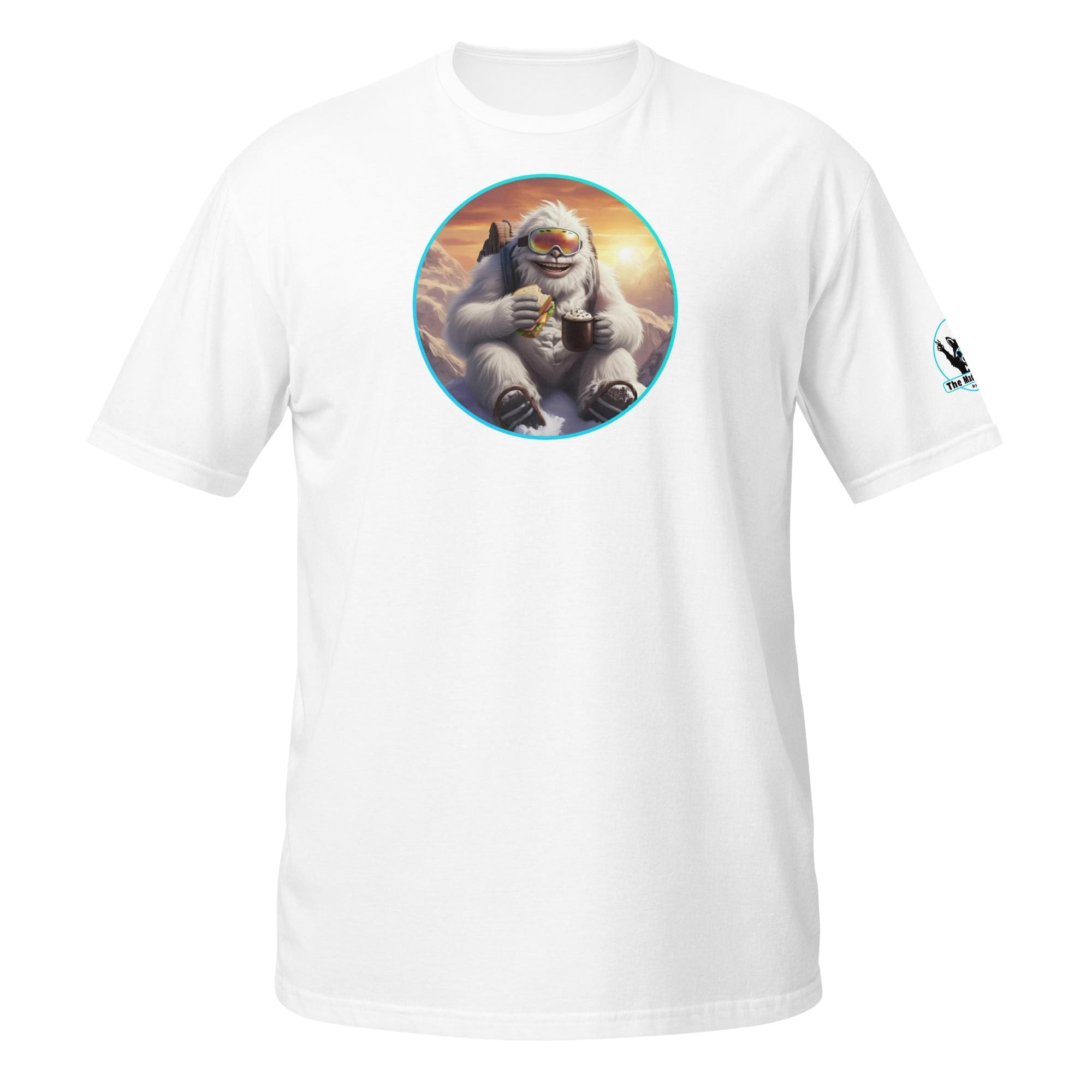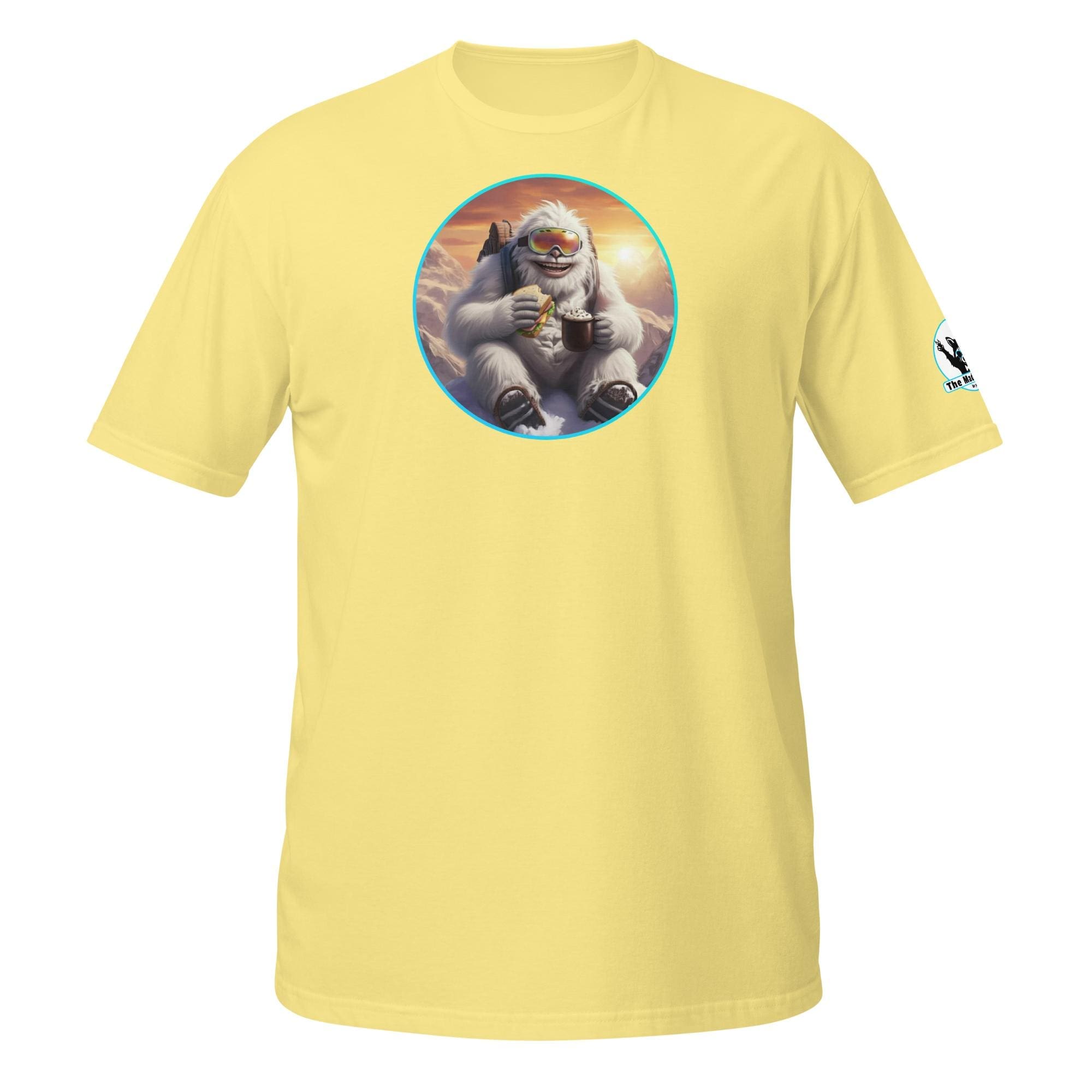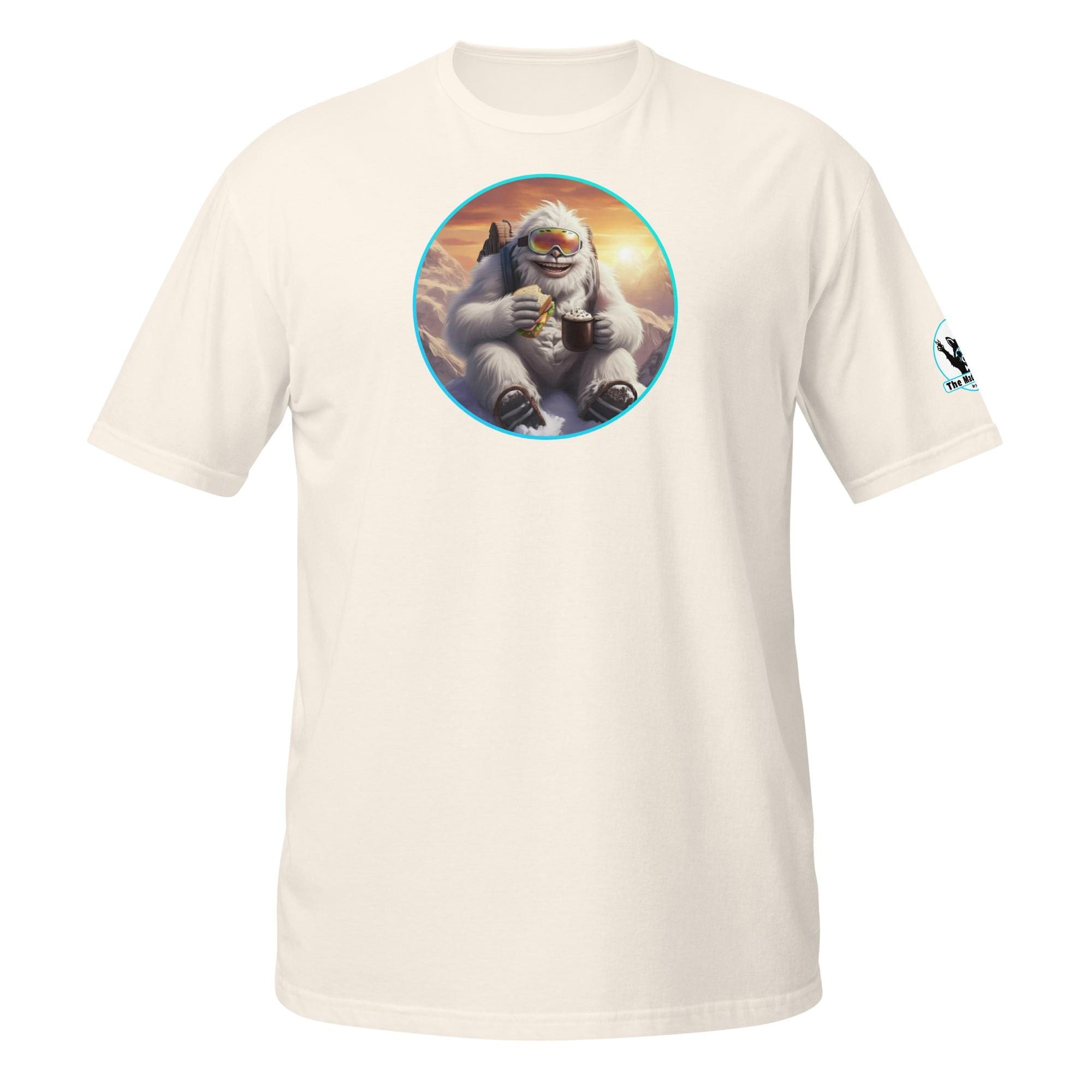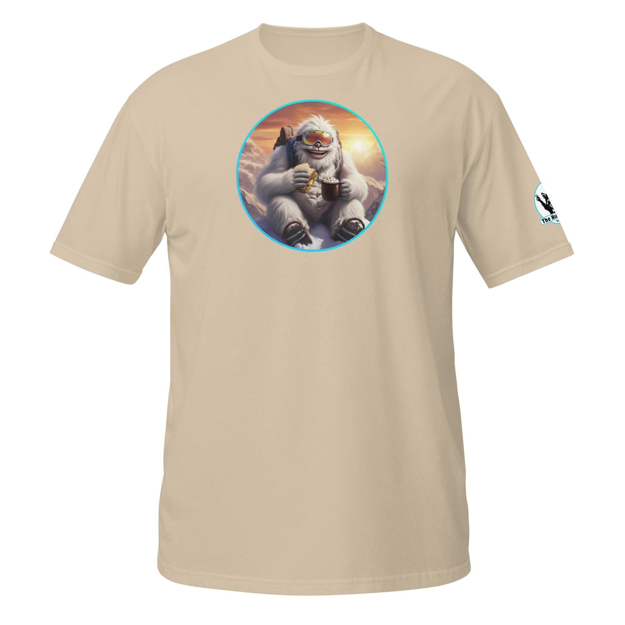 Who says mythical beasts don’t enjoy the simple pleasures? Our “Yeti’s Summit Snack: Alpine Adventurer’s Delight!” design captures a moment of pure,