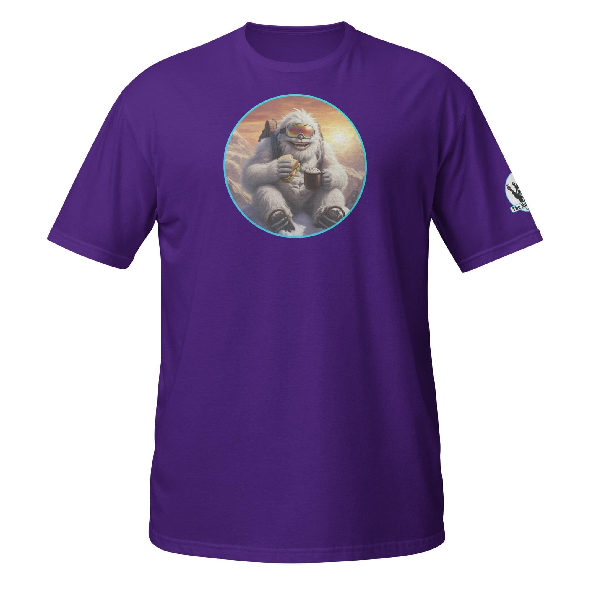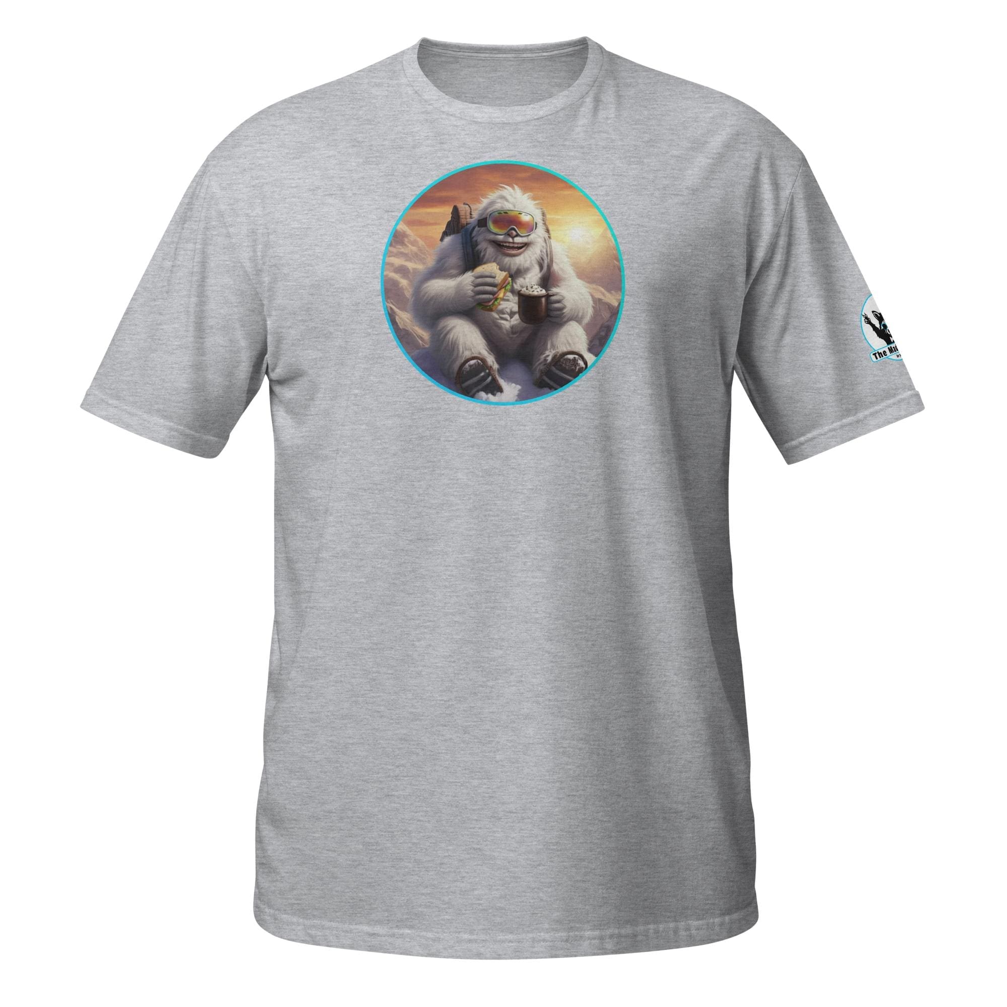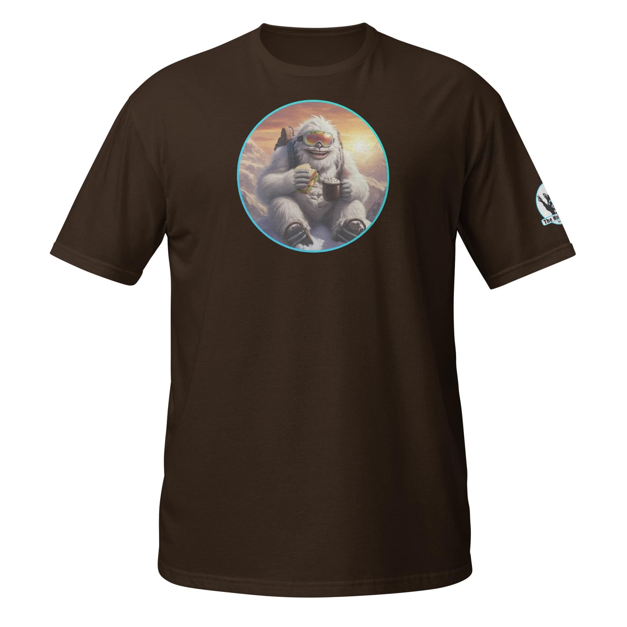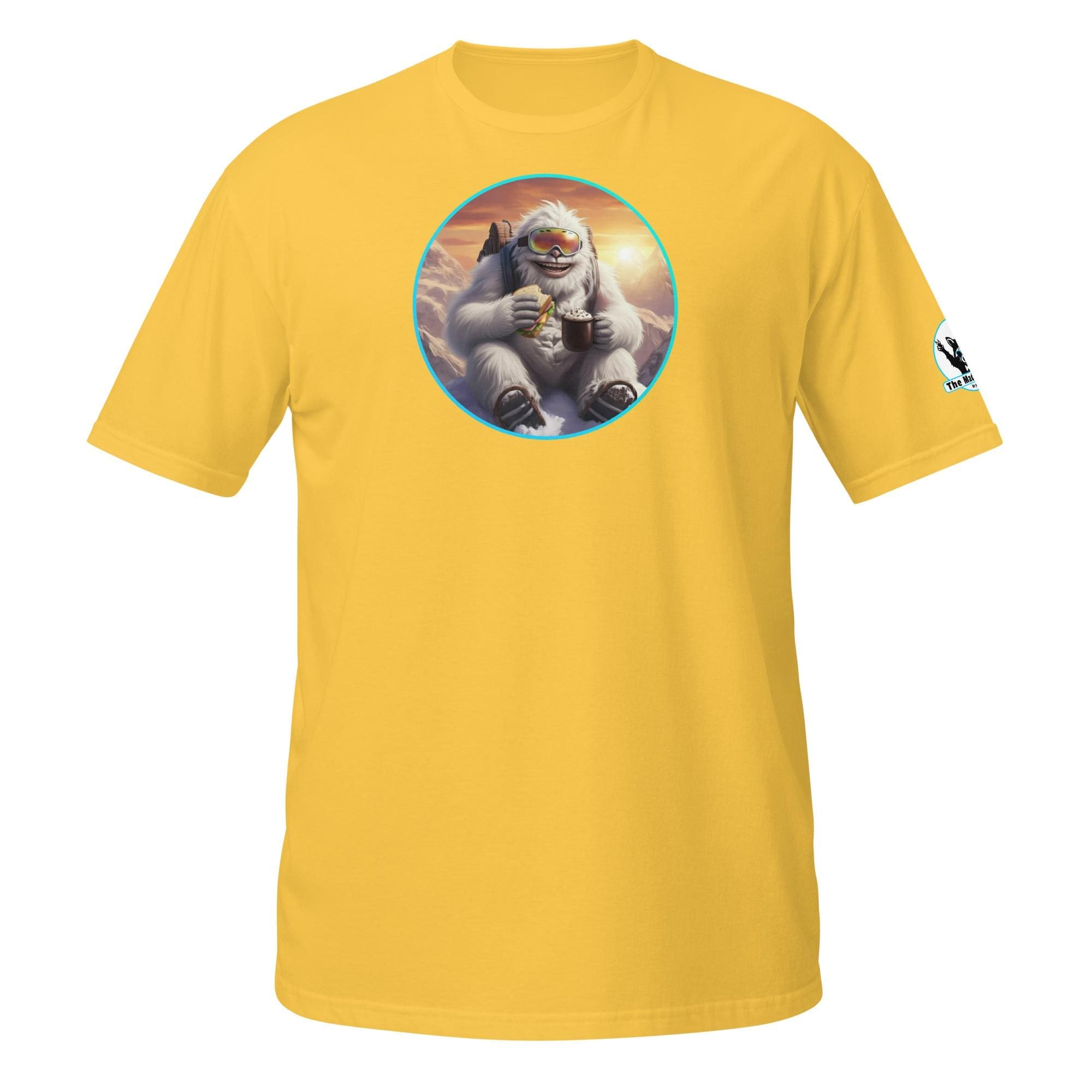 Who says mythical beasts don’t enjoy the simple pleasures? Our “Yeti’s Summit Snack: Alpine Adventurer’s Delight!” design captures a moment of pure,