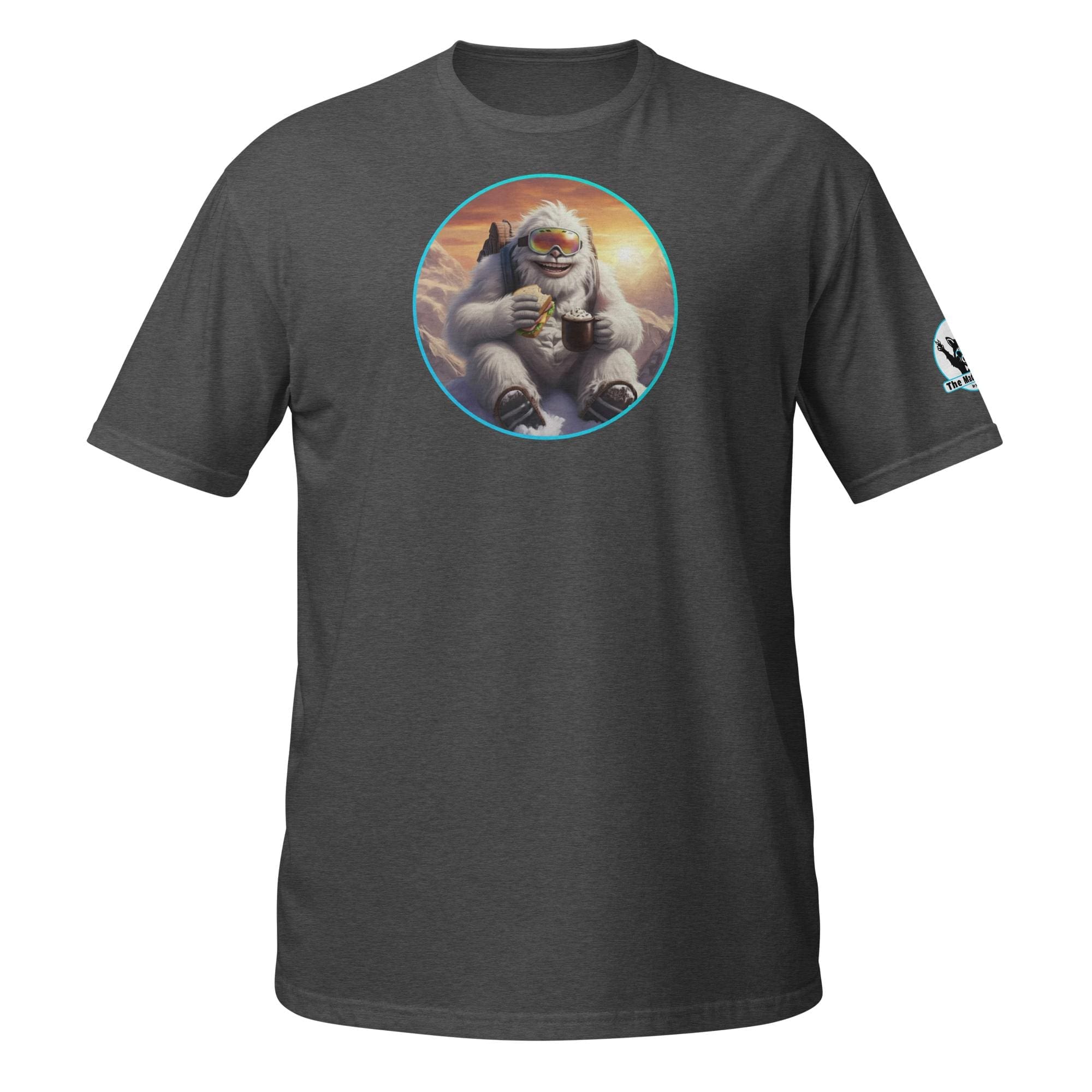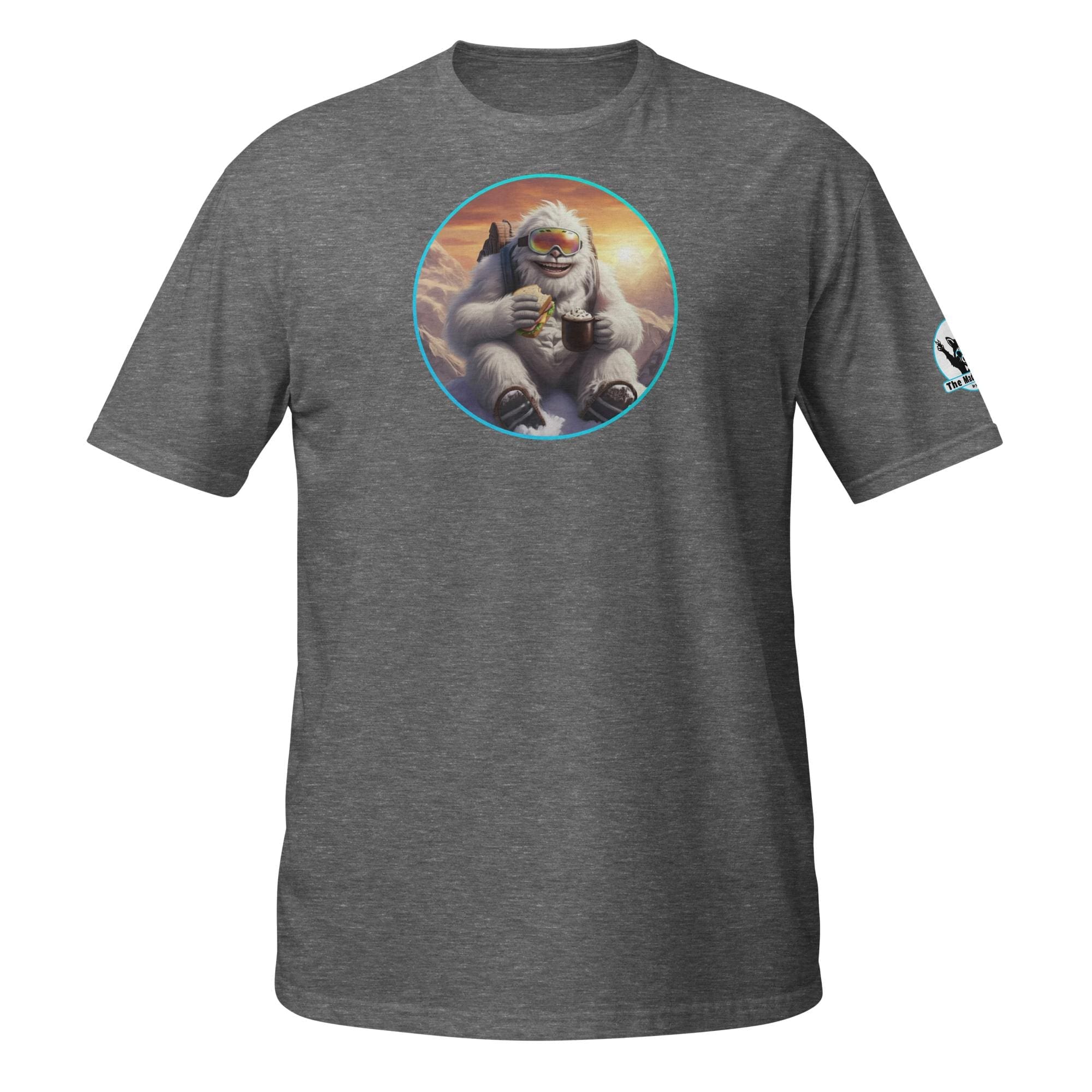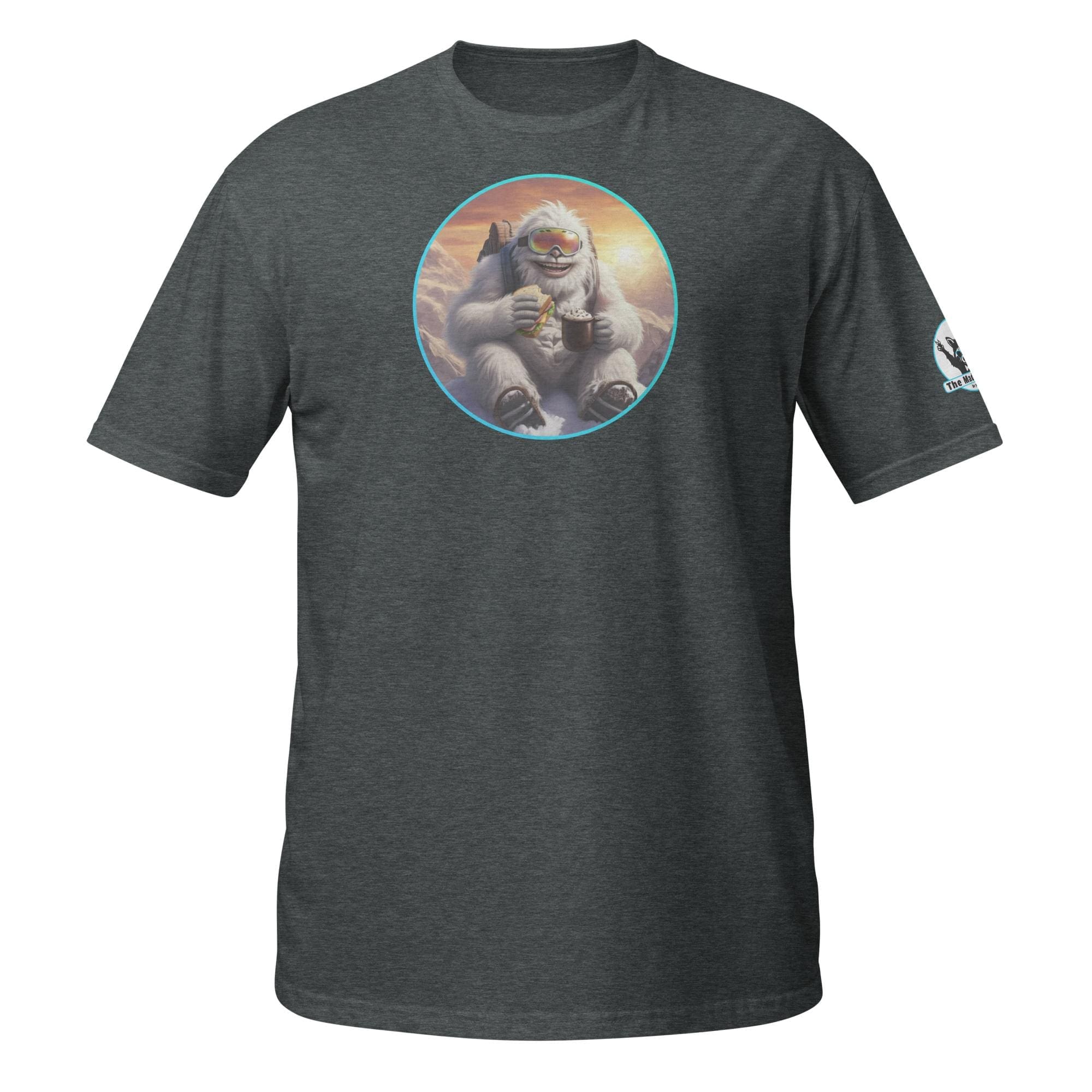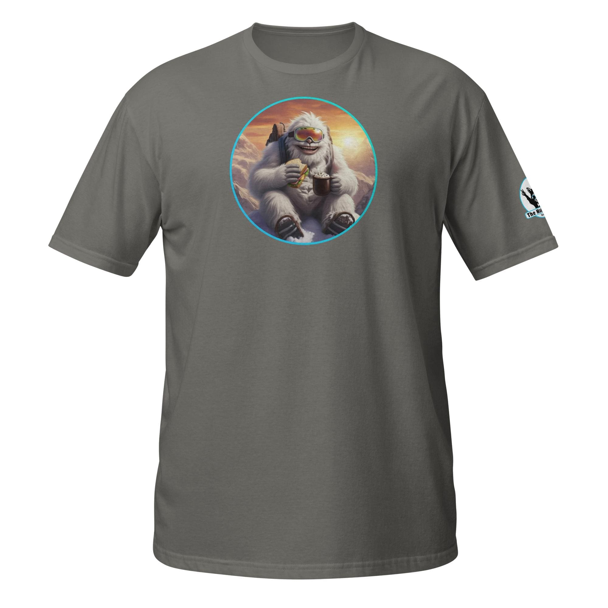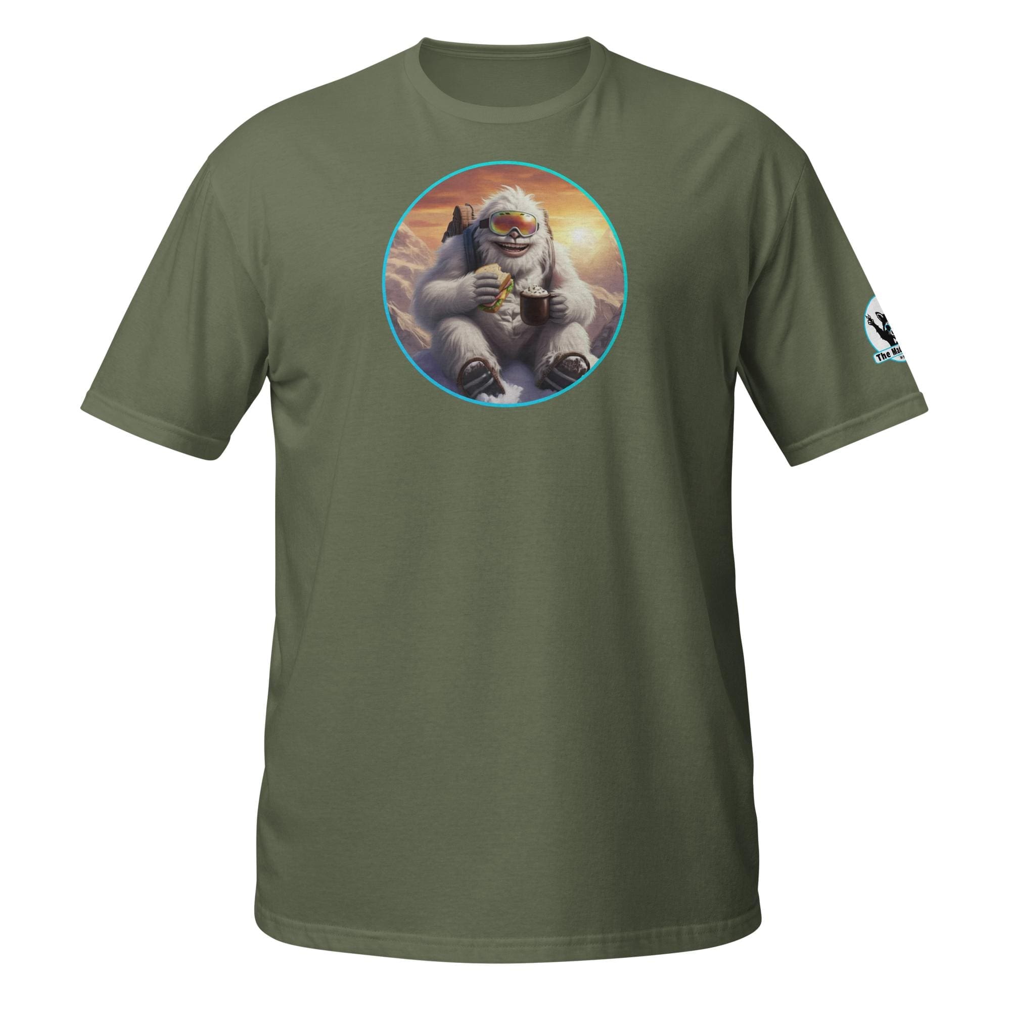 Who says mythical beasts don’t enjoy the simple pleasures? Our “Yeti’s Summit Snack: Alpine Adventurer’s Delight!” design captures a moment of pure,